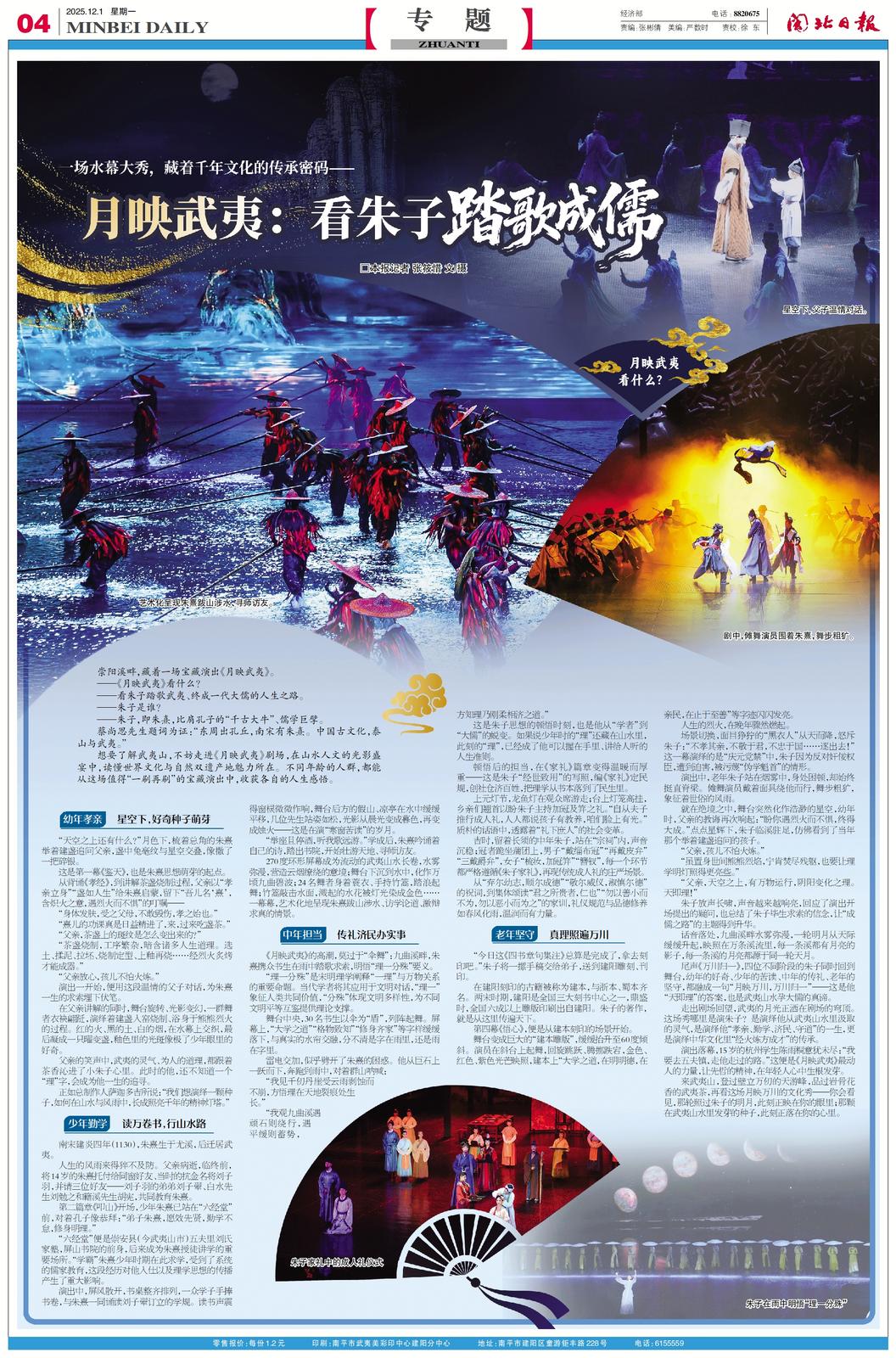 演出落幕,15岁的杭州学生陈雨桐意犹未尽:“我要去五夫镇,走他走过的路。”这便是《月映武夷》最动人的力量,让先哲的精神,在年轻人心中生根发芽。