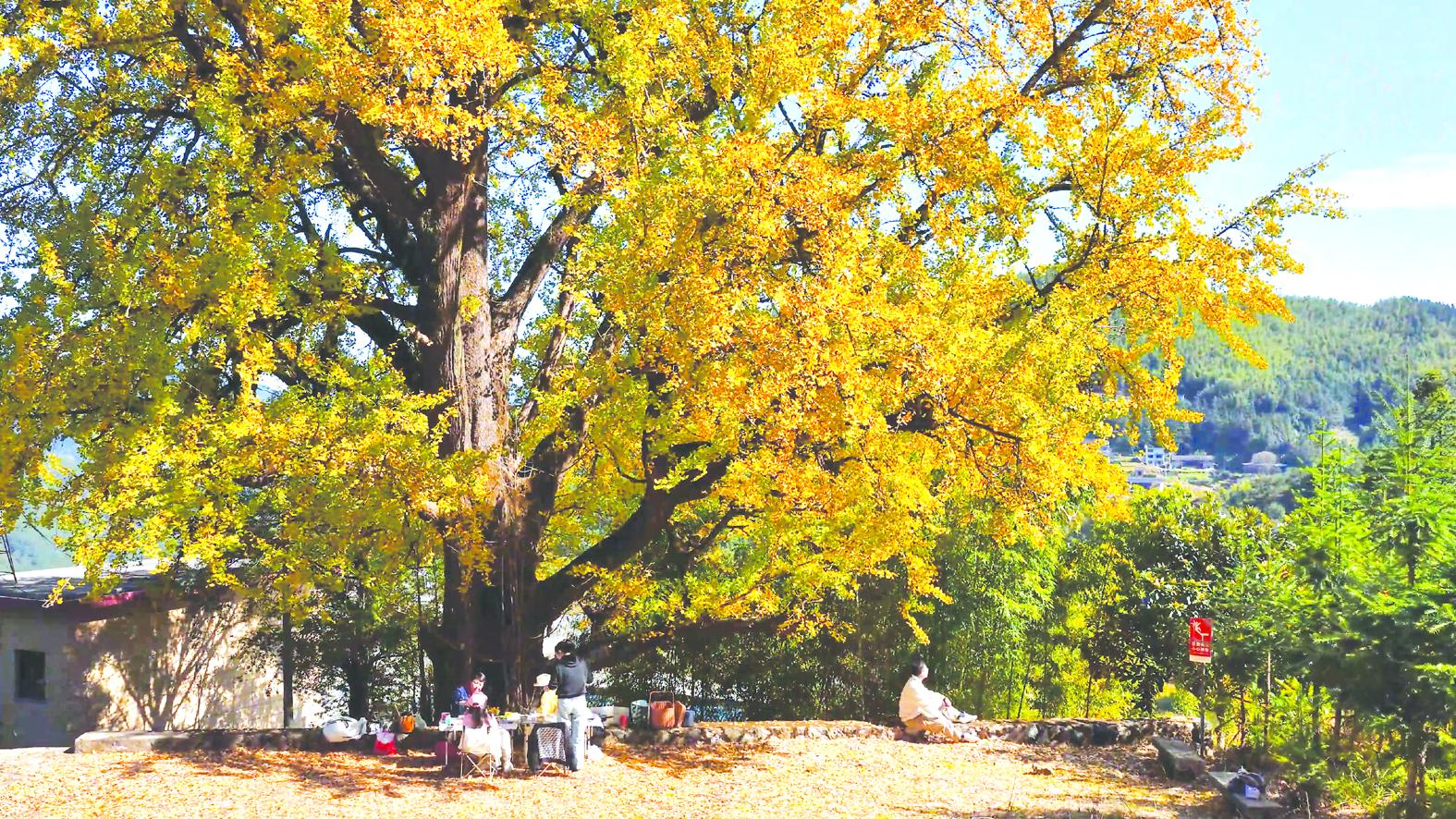 ?延平塔前镇菖上村古银杏“金黄铺地”,游客纷至沓来。菖上村的古银杏树分布得较为分散,全村超百年的有8棵,其中千年树龄的有1棵。 (赵金后 摄)