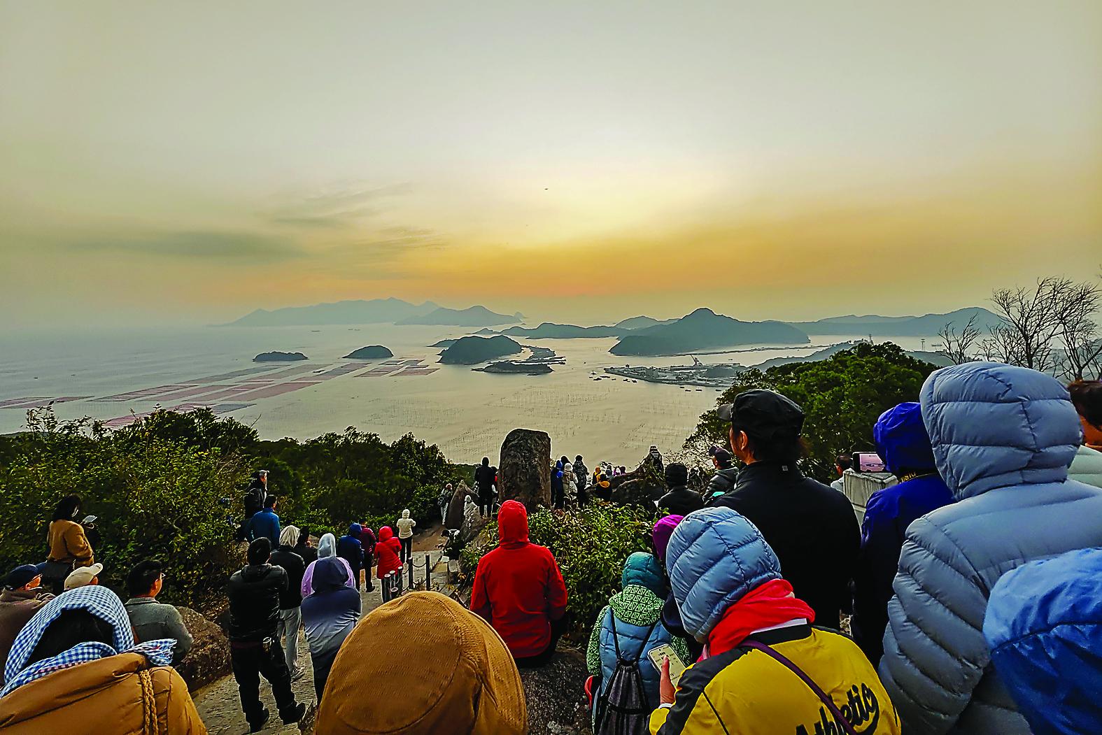12月4日,摄影爱好者们在霞浦县三沙镇花竹村观赏拍摄海上日出。