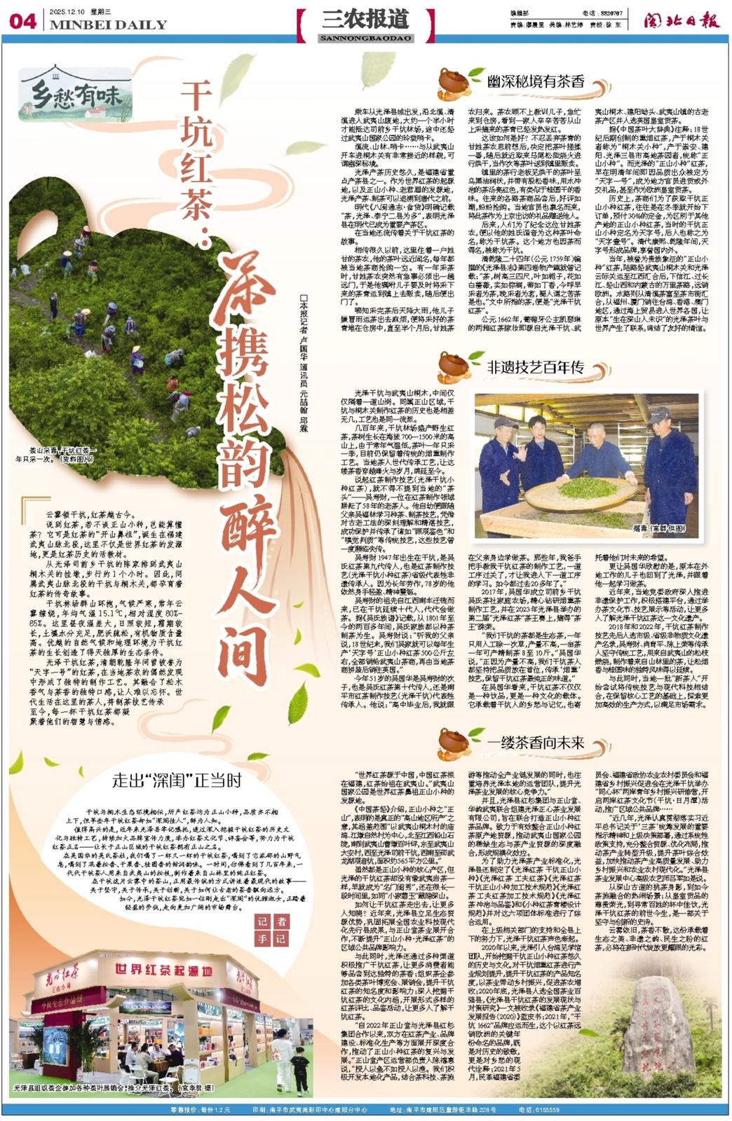 如何让干坑红茶走出去,让更多人知晓?近年来,光泽县立足生态资源优势,巩固拓展全国农业科技现代化先行县成果,与正山堂茶业展开合作,不断提升“正山小种·光泽红茶”的区域公共品牌影响力。