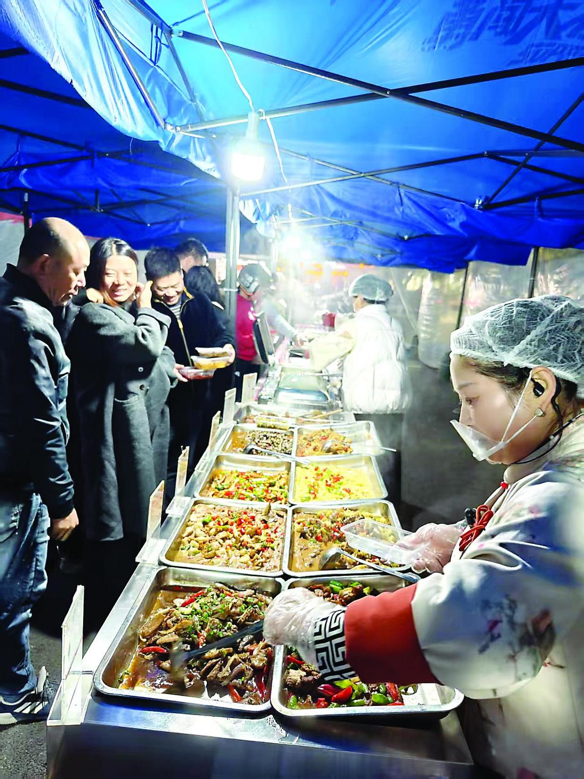 现场:帐篷迎客 亲民菜品受热捧