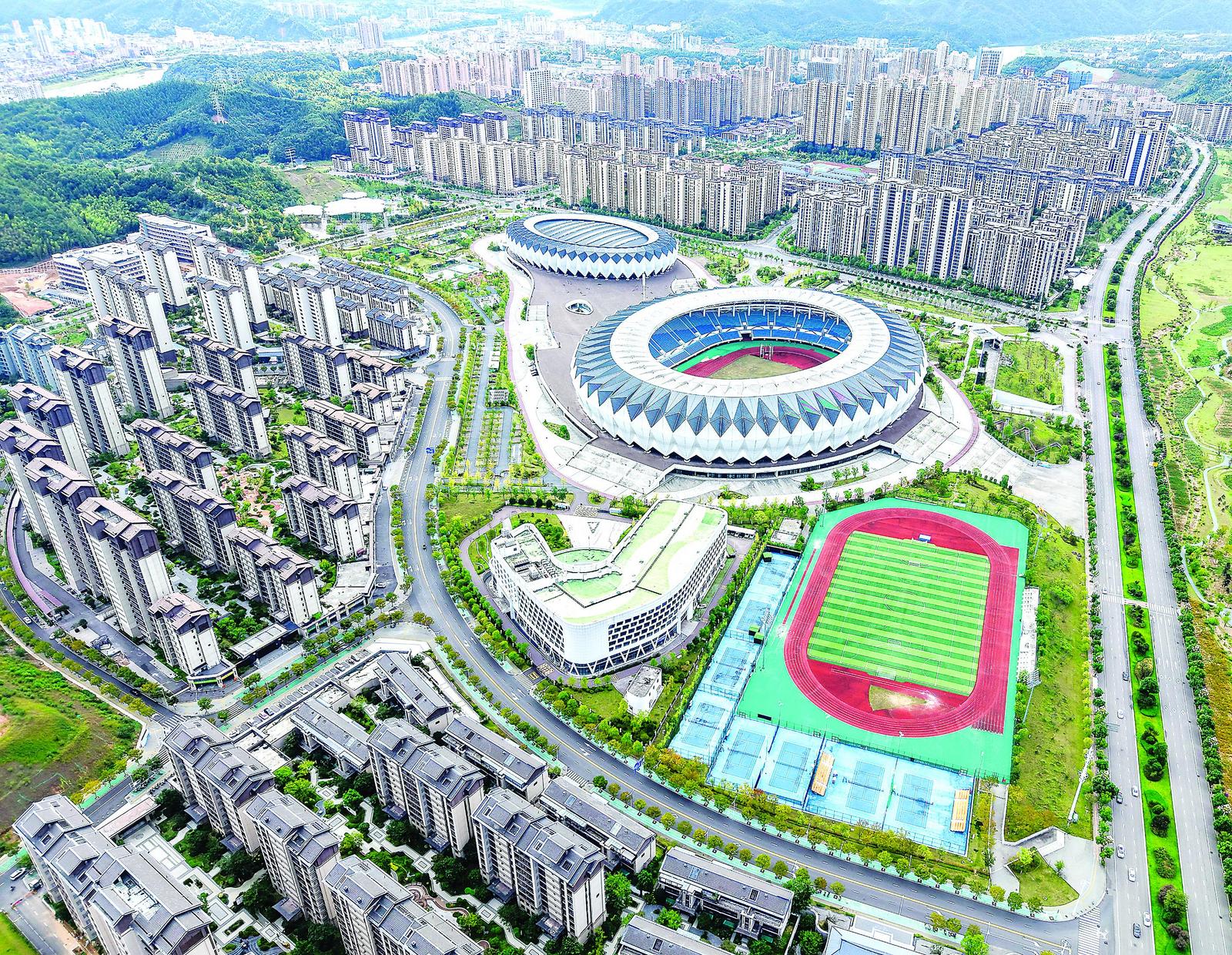 这是日前拍摄的武夷新区体育中心。该项目入选中国“全域海绵”典范项目,其在规划设计和建设过程中,紧扣“源头减排、过程控制、系统治理”的海绵城市建设新思路,积极探索雨水滞蓄、综合利用、智慧管理等创新模式,力求传承武夷风格、体现地域特色,成为南平市海绵城市建设展示的示范窗口。