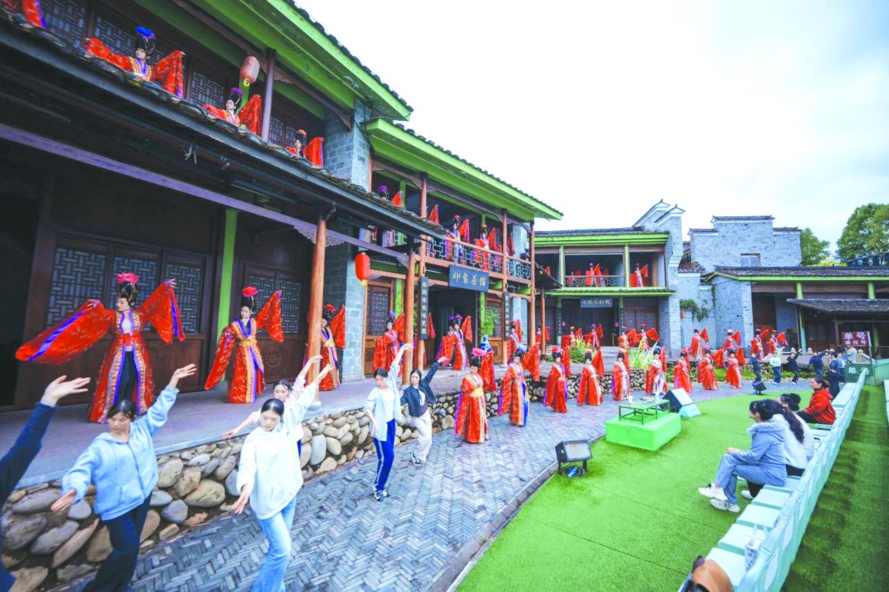 近期,印象大红袍公司对水筛、红竿、唐舞等表演环节进行提升,力求让观众享受到更好的视听体验。图为演员在排练唐舞。
