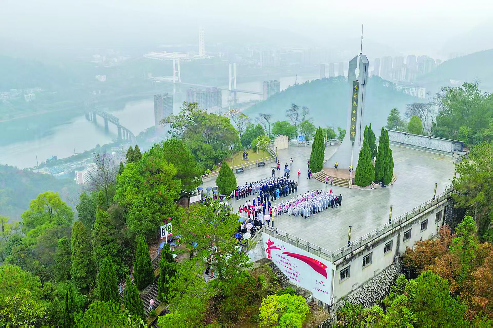 13日上午,南平市青少年宫、南平高速交警支队、延平区退役军人事务局等单位联合组织少先队员到南平市九峰山革命烈士纪念碑开展国家公祭日悼念活动,致敬革命先烈、弘扬爱国精神。图为活动现场。