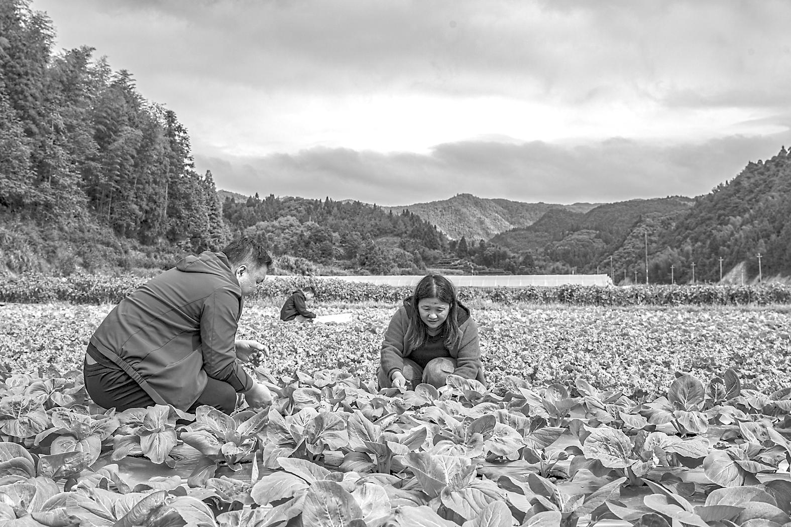 14日,政和县杨源乡楼下村村民在菜地里忙碌。楼下村海拔880米,依托高山区日照充足,昼夜温差大的特点,当地利用收完水稻的冬闲田,翻耕种植花菜、芹菜、白菜等蔬菜,促进村民增收。