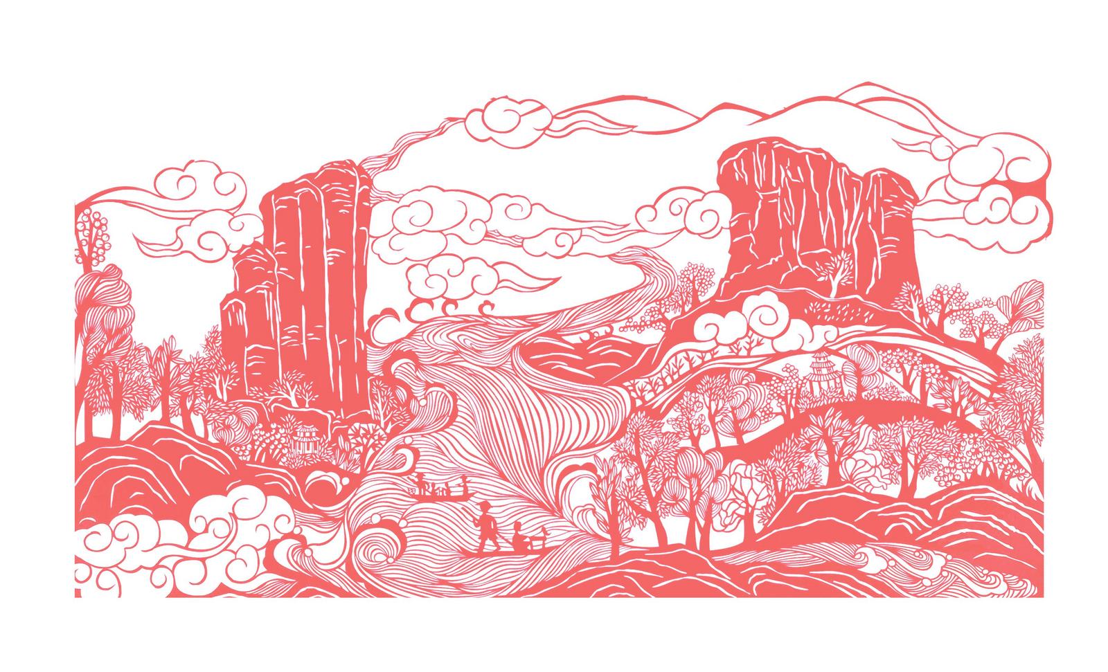 周冬梅的剪纸作品《武夷揽胜》