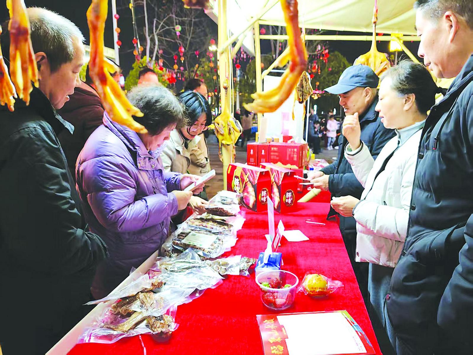市民游客在年货集市摊位上选购商品(张行健 摄)