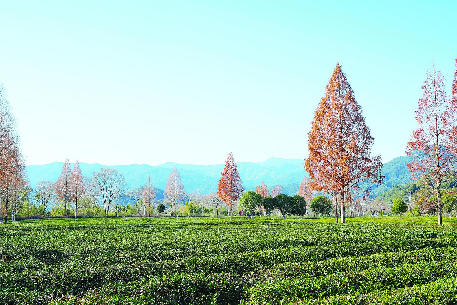 冬日的大坪洲生态茶园,展现出别样景致:连绵的茶畦在暖阳下泛着深沉的墨绿,与远处山峦的苍翠层叠交融;一株株红色的水杉点缀其间,为满目青绿添上一抹亮色;薄雾时而掠过山腰,为这片绿意世界平添几分朦胧诗意。茶园间新增的观景台与休憩座椅,则为市民、游客提供了更多驻足空间。