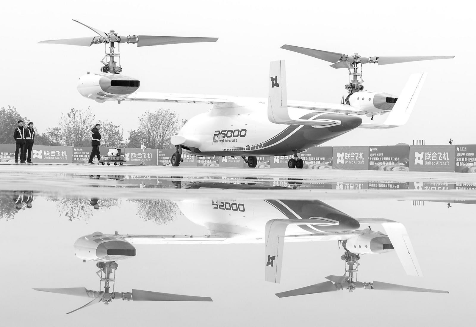 12月28日,工作人员为6吨级无人倾转旋翼飞行器“镧影R6000”做首飞准备。