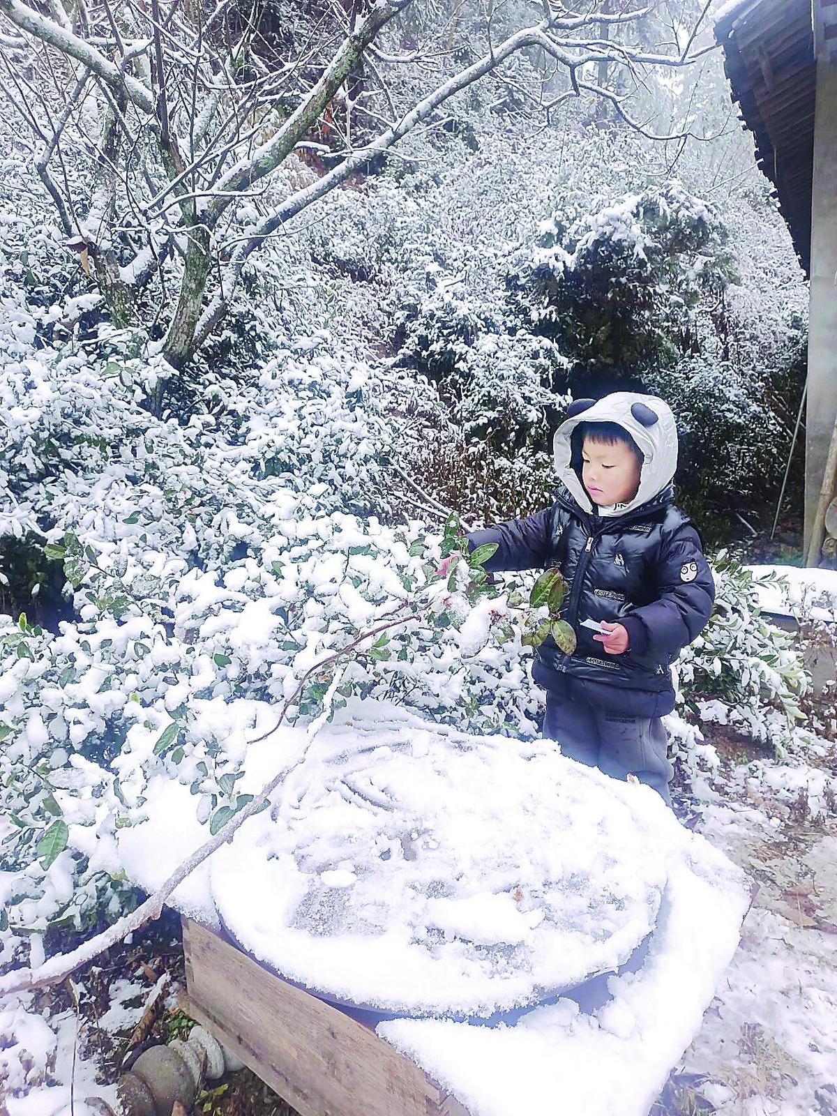 图为光泽县寨里镇太银村小朋友在雪中玩耍 。