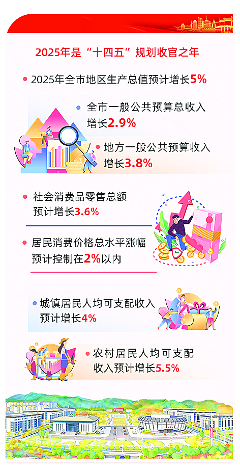 “十五五”时期是承前启后的关键期、夯实基础的发力期、绿色高质量发展的加速期。根据市委六届十次全会部署,提交大会审议的《南平市国民经济和社会发展第十五个五年规划纲要(草案)》,明确了今后一段时期我市经济社会发展的总体要求、目标任务和政策举措,“十五五”期间全市地区生产总值年均增长4.5%—5%,到2035年全市经济实力、科技实力、综合竞争力大幅跃升,人均地区生产总值达到中等发达国家水平,人民生活更加幸福美好,基本实现社会主义现代化。
