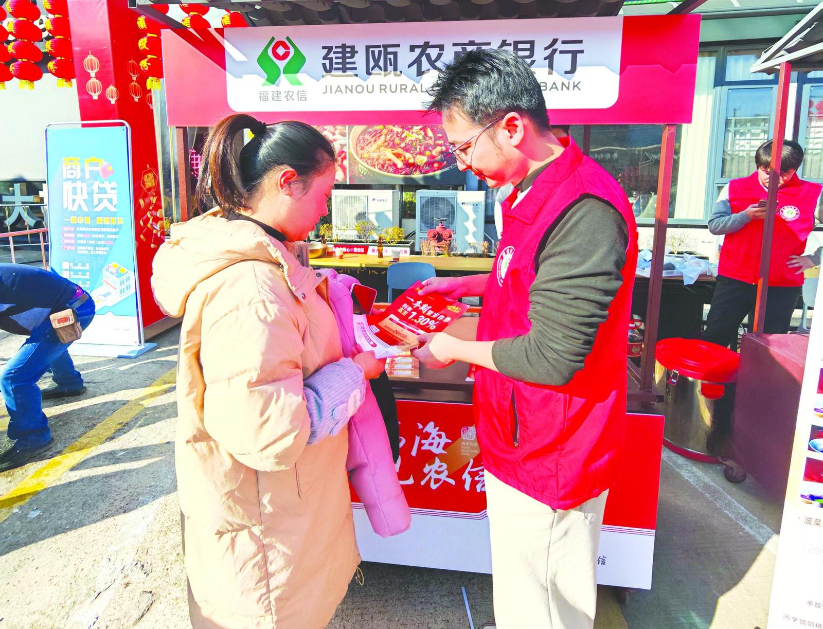 建瓯农商银行工作人员走访商圈内的商户 (资料图片)