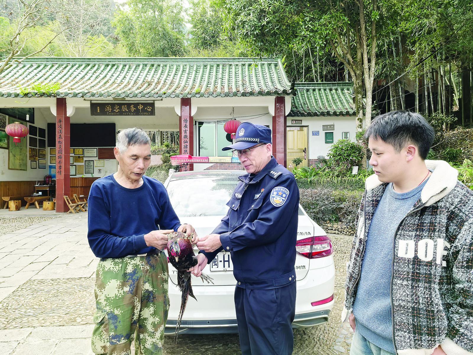 森林民警接到群众救助的七彩山鸡