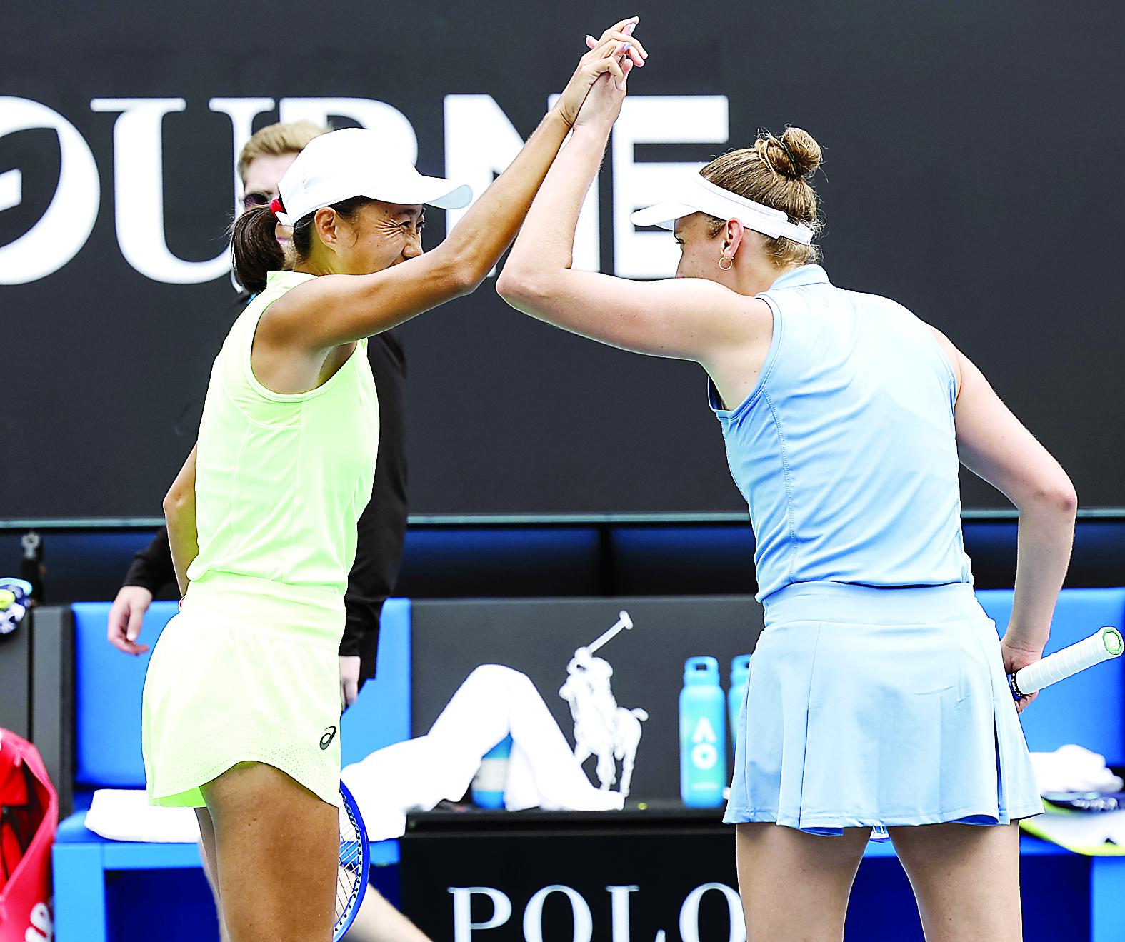 1月28日,张帅(左)/梅尔滕斯庆祝胜利。