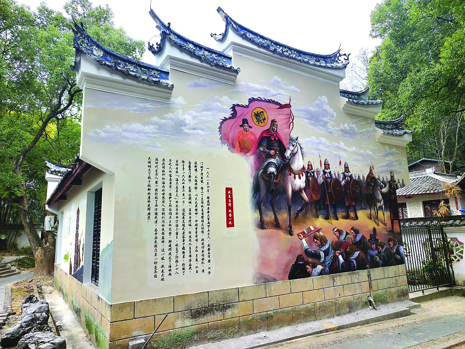 驻足细赏,每幅墙绘旁的文字都清晰记载着郑成功与延平的深厚渊源。“封王延平”的画面中,郑成功身着戎装、气度轩昂。左侧文字介绍,明末清初,郑成功在延平参与了诸多军事指挥活动,其广泛联络义士,多次组织北伐南征,沉重打击了清军势力。为表彰其抗清功绩,永历帝特册封他为“延平王”。