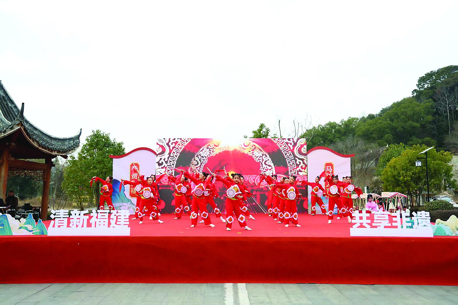 近日,由光泽县文体旅局主办,县文化馆、鸾凤镇油溪村承办的“清新福建·共享非遗”2026年迎新春非遗展示展演活动在鸾凤镇油溪村举行。图为活动现场。 (高群 毛雯丽 摄)