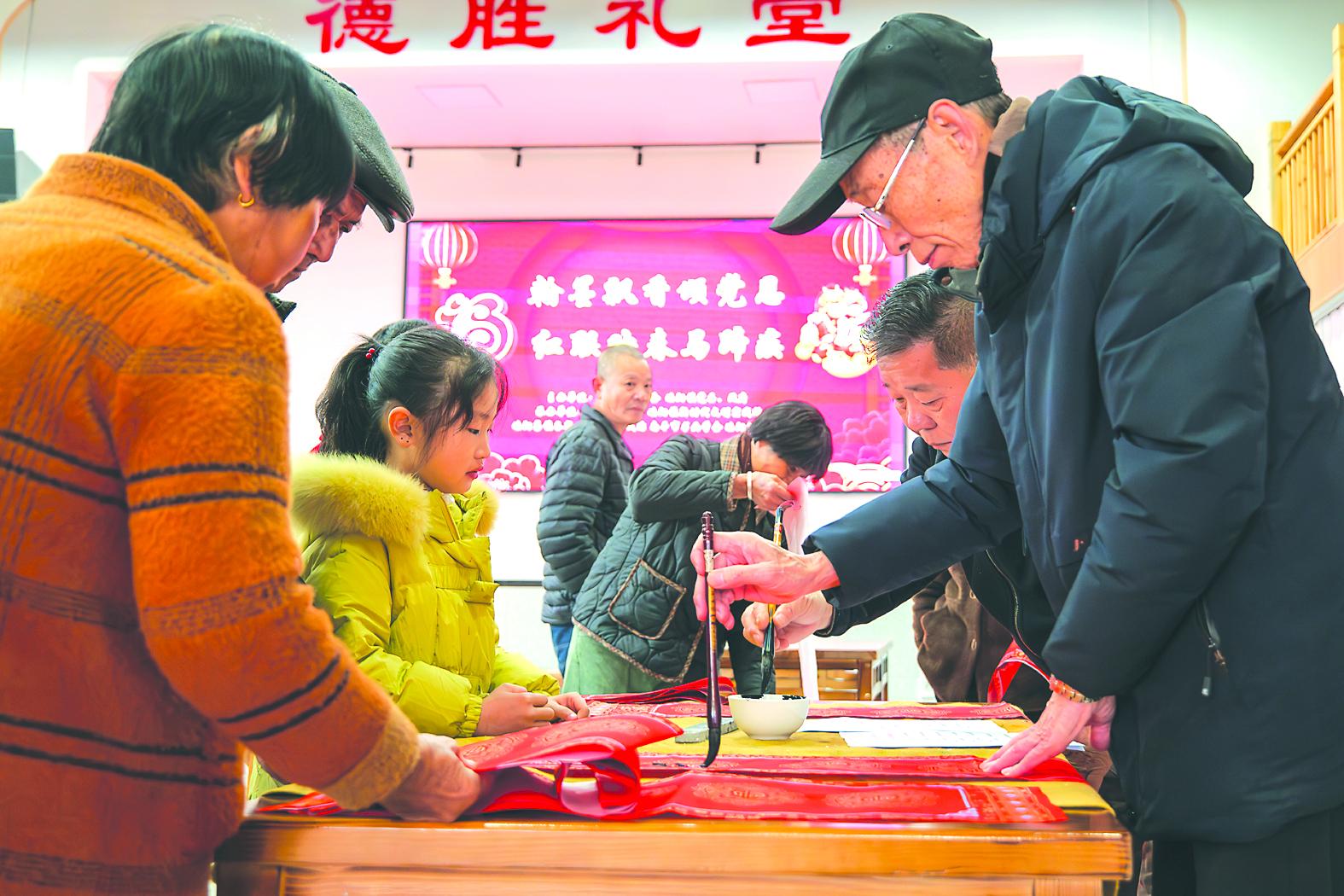 1月29日,延平区峡阳镇德胜礼堂内,由延平区老促会、峡阳镇主办的“翰墨飘香颂党恩,红联映春马蹄疾”新时代文明实践主题活动火热开展。市区两级书画协会会员下乡,现场挥毫,将“福”文化融入笔端,为基层群众送上祝福。当天正逢圩日,不少周边乡镇赶集的群众也闻讯而来,现场洋溢着质朴喜庆的年味。