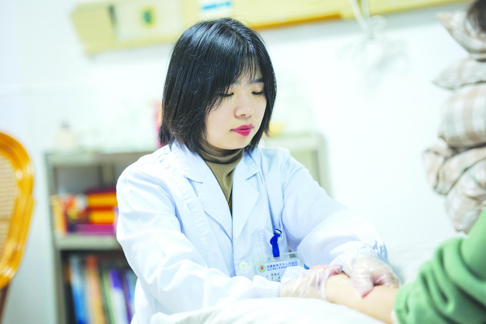 揭丽云在为患者进行穴位按摩 (张俣辰 摄)