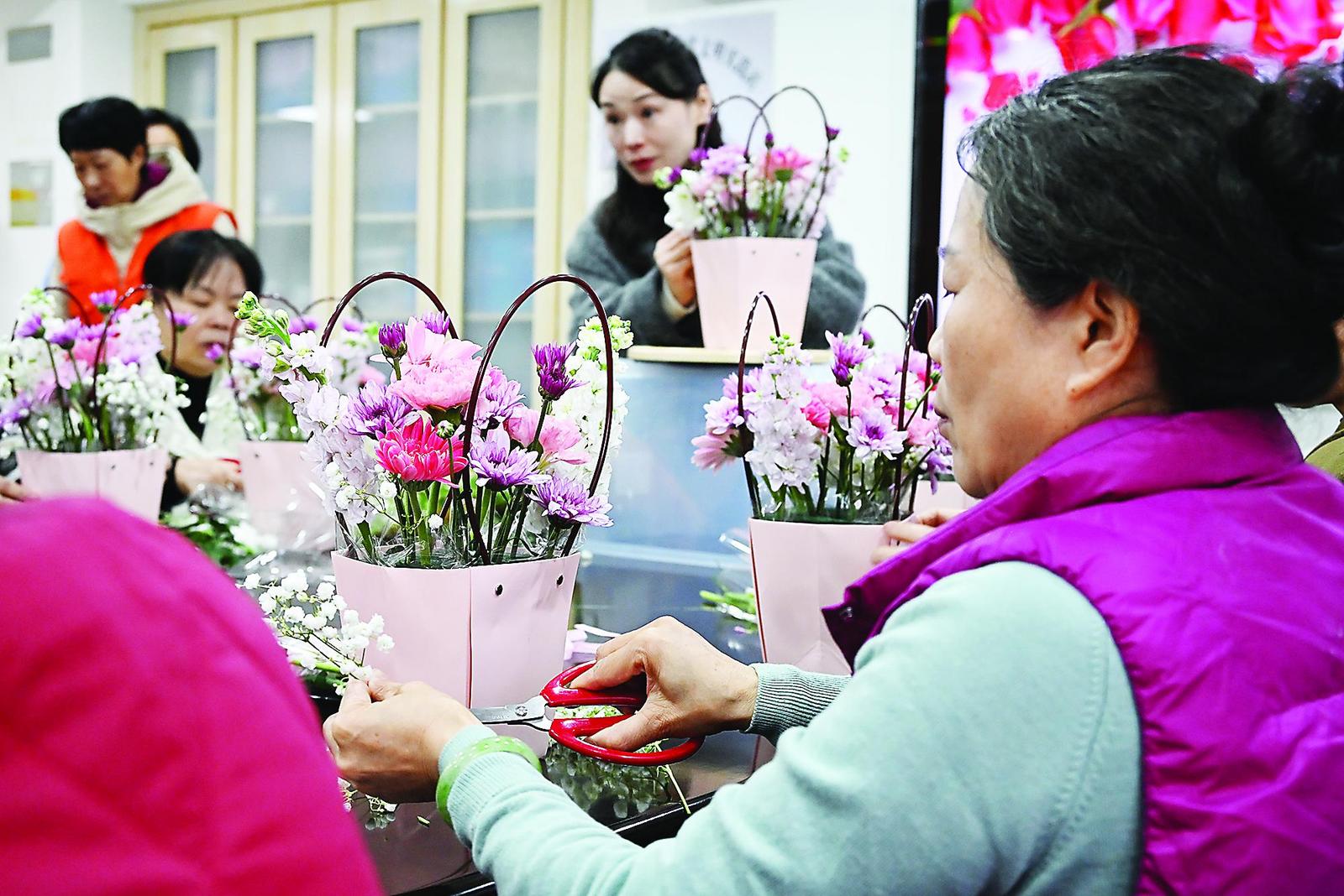 近日,建阳区宝山街道桥南社区举办“巾帼绽芳华 花香满社区”主题活动,大家在花艺师的指导下,执剪修枝进行插花创作,在花香与笑语中共度“三八”国际妇女节。 (吴建琼 邓臻祯 摄)