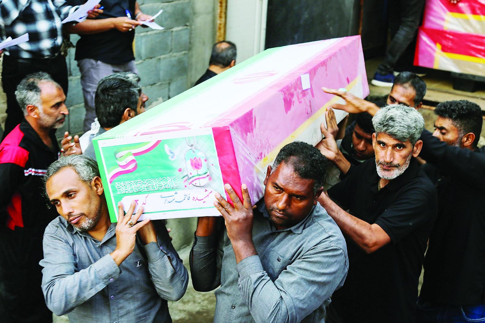 图为:3月3日,在伊朗南部米纳卜市,人们为遭到美以空袭小学的遇难者举行葬礼。 (新华社/迈赫尔通讯社)