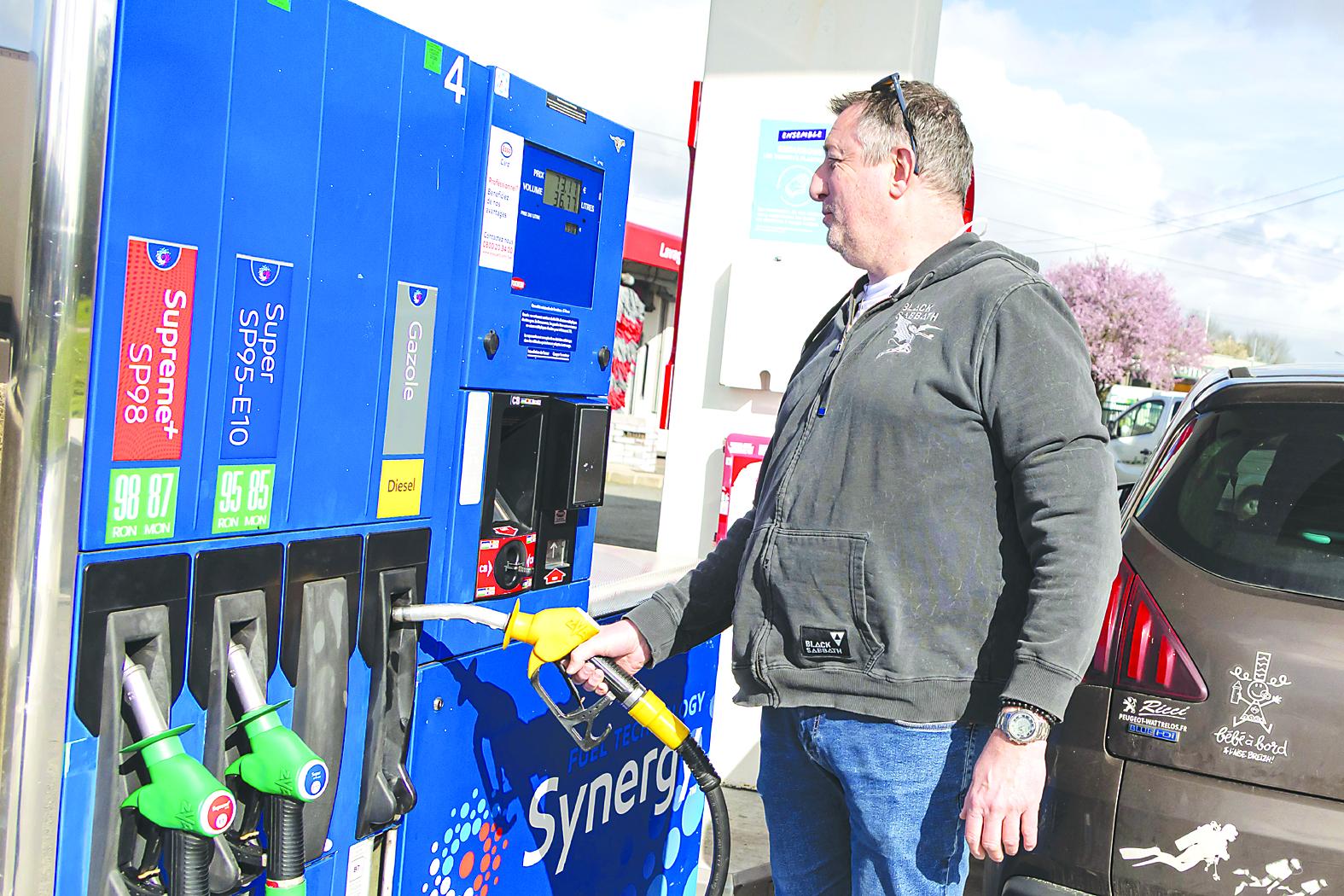 3月11日,顾客在法国北部的阿斯克新城一处加油站加油。
