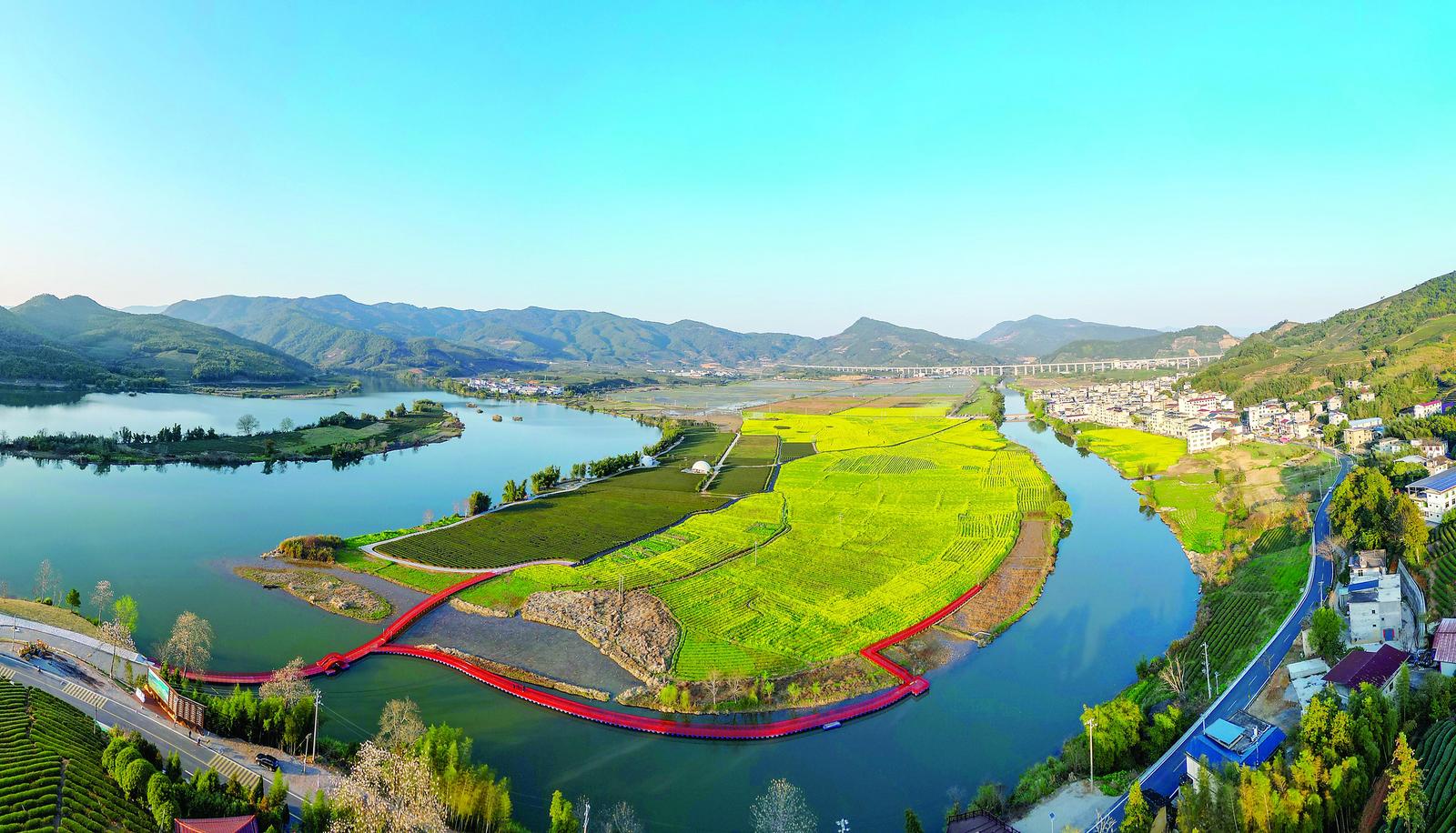 近日,崇阳溪漫游道沿途的武夷山市兴田镇南岸村油菜花开放,花海与溪水、村庄相映成趣,构成一幅春日田园的美丽画卷。近年来,我市坚持生态保护第一,统筹保护和发展,围绕保护好、建设好、发展好系统发力,持续探索生态保护、绿色发展与民生改善相统一的美丽乡村建设路径,绘就人与青山两不负的壮美画卷。 (张行健 摄)