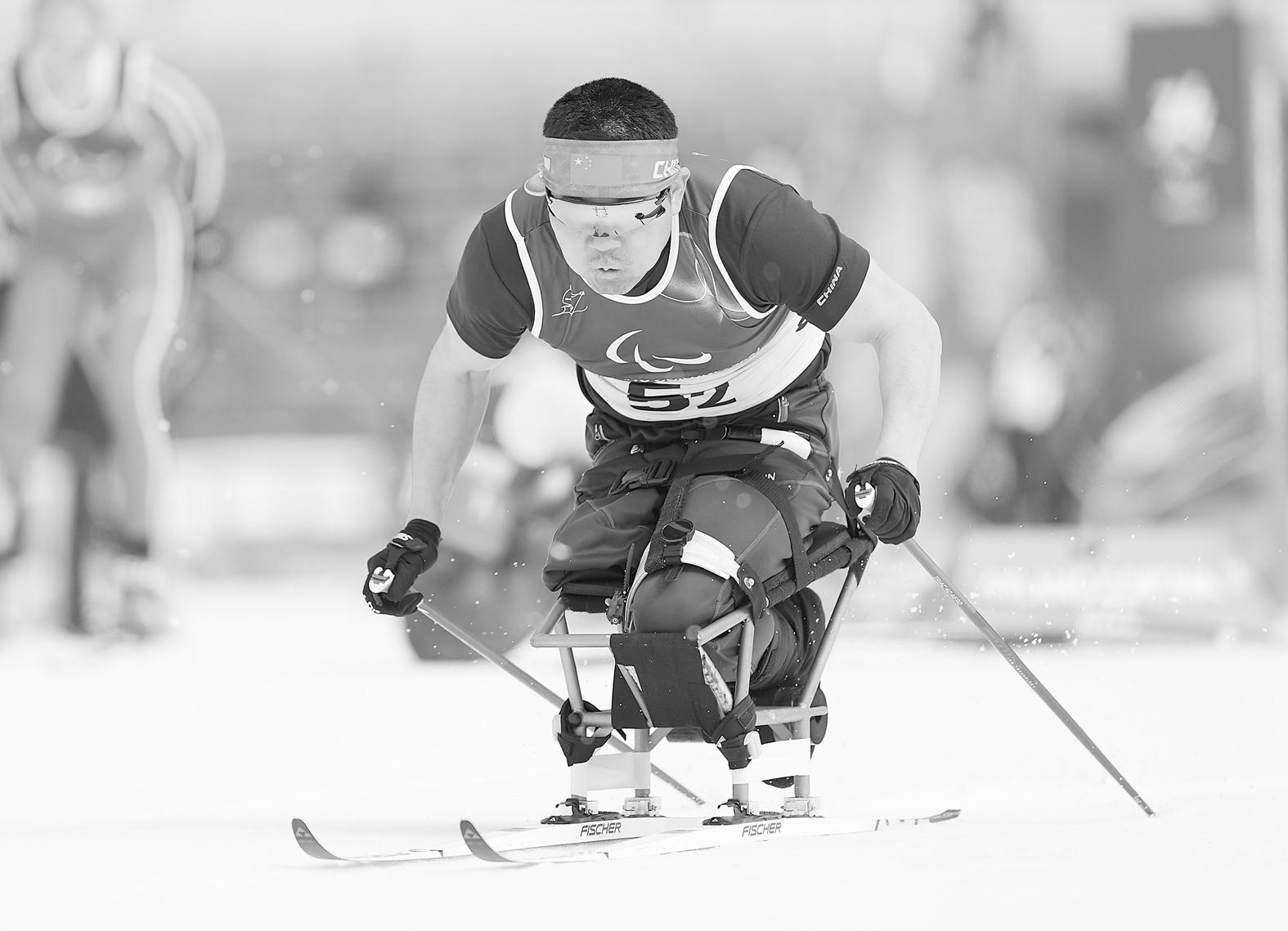 当地时间3月14日,在意大利泰塞罗举行的米兰-科尔蒂纳冬残奥会越野滑雪公开接力4×2.5公里比赛中,中国队夺得冠军。 (新华社记者 侯昭康 摄)
