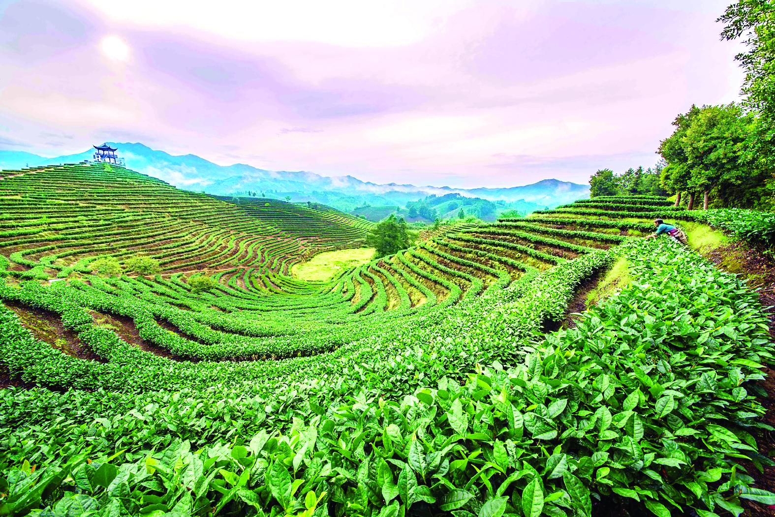 近年来,松溪县立足全国绿色食品原料(茶叶)标准化生产基地县的优势,全力打造茶叶出口及新式茶饮原料基地县。同时,推进茶庄园建设,开发茶文旅融合旅游线路,培育硬木茶盘、青瓷茶杯等茶产业链相关产品。截至目前, 松溪全县茶园面积8.2万亩,13家茶企业获得有机认证,面积7492亩;17家茶企取得绿色食品认证。图为日前拍摄的茶平乡万亩生态茶园。 (祝晓峰 摄)