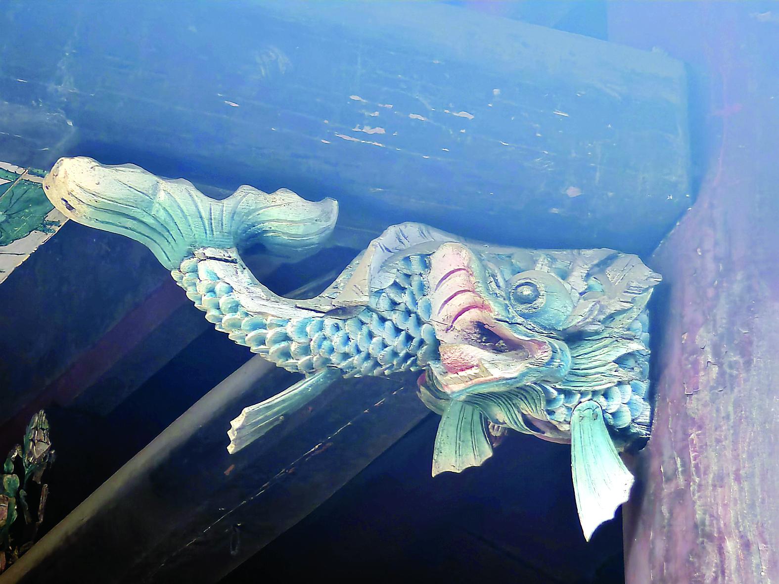 螭吻彩绘木雕构件