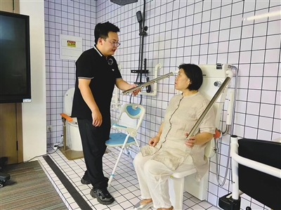 | 王梅体验适老化浴室区域。 |
