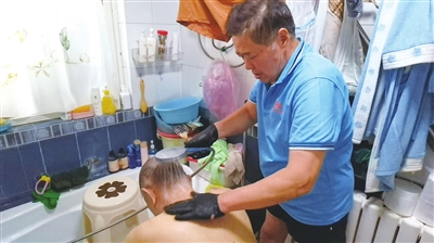 因仲济远是男性,此次由金绪智主要负责服务。泡完澡后,他耐心地为老人洗头,并说道:“哪儿痒您告诉我,我帮您多挠挠,有任何不舒服您就跟我说。”