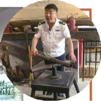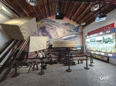 | 刘增平在红石文化馆介绍当年留下来的采运工具。(摄于2025年10月11日) |