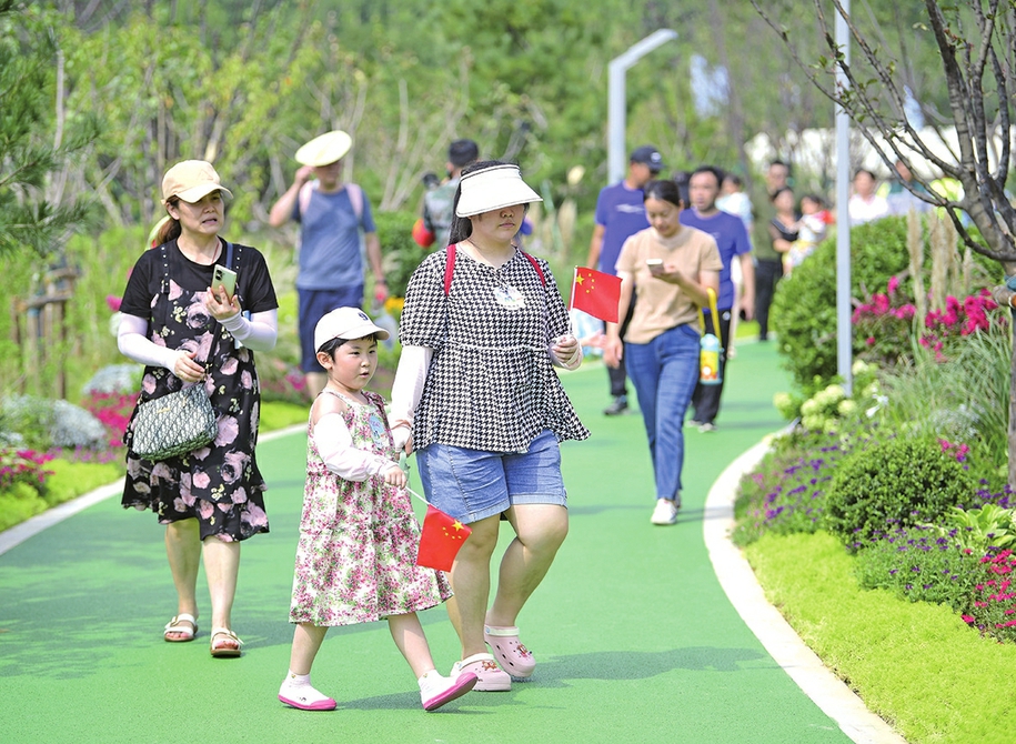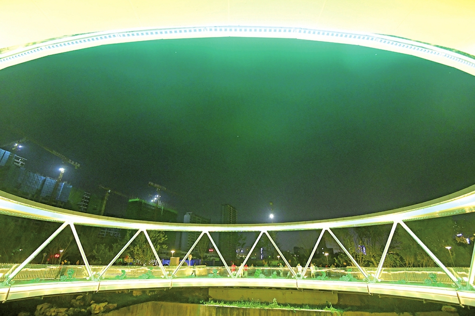 △▽佛慧山生态廊桥的启用,方便了市民登山远足。提升绿道整体功能,让市民尽享绿道之美。腊山河改造提升,为市民打造了一条“河畅、岸绿、景美、宜游”的滨河生态幸福廊道。孟家水库及周边如今打造成了“一轴一带五区”的现代化龙鼎滨水公园。健身、观景、文化融为一体,市民游园的体验感和幸福感切实提高了。佛慧山生态廊桥打通了大千佛山-奥体文博片区两大绿道系统的连接断点。“云影桥”是腊山河上首座环形跨河景观桥,夜幕中彩灯绚烂,市民游兴正浓。腊山河生态景观带是西客站片区重要的景观轴线,彰显着西部城区的都市形象。 9月3日,佛慧山生态廊桥正式对市民开放,这是济南人获得的又一绿色福利。今年以来,我市已经建成各类公园60余处。目前正值初秋,济南的公园渐入佳境,让泉城醉于一园秋意。 今年,市园林和林业绿化系统谋划实施精品公园、绿道贯通、森林步道等10大类生态绿化项目,其中新建口袋公园、社区公园、古树公园等各类公园100处,列入市政府为民办实事事项。在实施过程中,济南坚持规划引领,以增加百姓身边公园绿地为目标,因地制宜,积极探索“生态+”模式,坚持一园一品、突出文化主题,创新生态价值,努力实现绿色惠民、文化惠民。 以新建成的龙鼎滨水公园为例,其充分利用现有空间和环境,形成以南北水系为轴,以环水健康步道为纽带,集休闲观赏区、儿童活动区、亲子戏水区、人文展示区、湿地生态区于一体的“一轴一带五区”现代化滨水公园,将健身、观景、文化融为一体,切实提高了市民游园的体验感和幸福感。 此外,济南西部城区的腊山河综合整治改造提升项目多处河段已经陆续向市民开放。腊山河生态景观带是西客站片区重要的景观轴线,同时也是一条优美的生态休闲廊道。绿道沿线设有“碧水繁花”“科普花园”“岱青海蓝”“槐风新韵”“腊山河公园”“西城记忆”等不同功能主题的景观节点,设施完善、步移景异,为市民打造了一条“河畅、岸绿、景美、宜游”的滨河生态幸福廊道。 如今,“开窗见绿、出门入园”的美好愿景在济南已变为现实。城市绿道,让生活更具诗情画意;口袋公园,“兜”起了家门口的微幸福;近来的公园绿地开放共享,更是让绿色福利变得“触手可及”。济南的公园也正在打开围墙,探索“公园+”的复合功能,特色市集、围炉煮茶、书香小屋、文艺演出……让济南的公园多了“文艺范儿”,越来越引领着泉城市民文化生活的新风潮。 (文/图本报记者张晓涵崔健)