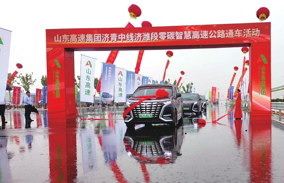 9月24日,济青中线济潍段正式通车。(戴升宝摄) 本报9月24日讯(记者戴升宝)今天,全国首条零碳智慧高速——济青中线济潍段正式通车。至此,济青中线全线贯通,全省高速公路通车里程突破8200公里。 济青中线济潍段是山东省“九纵五横一环七射多连”高速公路网中“射三”线,全长161.86公里,设计速度120公里/小时,双向六车道。作为连接济南、青岛的第三条黄金通道,济青中线建成通车后,对促进鲁中山区等沿线区域经济快速发展、加快省会经济圈与胶东半岛经济圈互联互通、完善山东高速公路网布局等具有重要意义。 作为全国首条零碳智慧高速,济青中线济潍段建成通车,标志着山东高速公路绿色低碳转型的新飞跃。项目建设中,按照“全路段感知、全过程管控、全天候通行”的建设定位,围绕“智能管服、快速通行、安全保障、绿色节能、车路协同”五大体系,以智慧隧道为突破点,以零碳目标为导向,打造了全国领先、具有示范带动作用的零碳智慧高速公路。 在“零碳高速”建设方面,济青中线济潍段突破边坡光伏、智能微电网等技术,研发新型能源管控平台,打造了全国首个光伏边坡一体化试验路段、首个零碳标准路段,实现了整条高速公路在运营阶段的零排放。 在“智慧高速”建设中,济青中线济潍段创新云管理服务,深化大数据应用,以数字化、信息化全方位赋能设计施工、运营养护,实现了全寿命周期数字化交付、省级车路协同云平台、智慧路网管控平台、高速公路隧道不降速通行等多项全国首创。 济青中线济潍段首创“一路十域、一路十景、一路十味”交旅融合模式,打造“开放经济带”国际主题特色服务区,让服务区有味道、有体验、有文化、有记忆,带动沿线经济发展,服务公众美好出行。 今年以来,山东加快建设明村至董家口、临淄至临沂等23个高速公路项目,已建成通车济南大西环、济青中线济潍段等2个项目。到2025年,山东高速公路通车及在建里程将达到10000公里,省际出口超过30个,基本实现“县县双高速”。