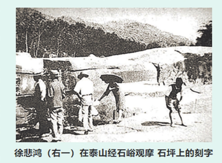 徐悲鸿(右一)在泰山经石峪观摩石坪上的刻字徐悲鸿在导沭水利工地为民工画像 以 画 马著称的徐悲鸿大师既擅长水墨丹青,亦熟谙油画素描。他一生探索艺术,屐痕留于海内外,也曾两度在山东留下踪迹。1931年,徐悲鸿、潘玉良率绘画班学生到山东参观写生,在泰山准备创作《浴日图》时,却因天公不作美而搁浅;1951年他又抱病去导沭整沂的水利工程工地体验生活,当时想创作一幅反映新中国建设面貌的巨幅油画,又因突发脑溢血使画作无法面世。■第一次来山东,《浴日图》搁浅 1931年5月21日,时任中央大学艺术科教授的徐悲鸿、潘玉良率绘画班学生毕业参观团一行14人,自南京北上冀鲁,开始了为期一个月的参观写生。5月23日,首站抵达天津,次日至北平,逗留半月,写生作画。6月9日下午,徐悲鸿一行乘车南下,往泰山观日,并游曲阜。 徐悲鸿6月8日在北平接受《京报》记者采访时表示:“兄弟拟明日(9日)携带学生乘津浦车赴泰山,登日观峰观日出,且拟作《浴日图》,同时赴曲阜,瞻谒孔庙。兄弟最崇奉孔夫子,将藉此机会,向孔二先生磕几个头以示虔诚。孔庙柱石,大可合围,其镌工富于艺术上色彩,余甚爱之,准备摄影以留纪念。顺道鲁垣,与教育厅何厅长一晤,何系在法国留学时老友,亟欲一临存也。”这里说到的何厅长,即山东省教育厅厅长何思源。何思源曾就读北京大学,后到巴黎大学攻读经济学。徐悲鸿曾为北大“画法研究会”导师,后入巴黎国立高等美术学校深造。二人虽一个搞艺术,一个学经济,却志趣相投,成为无话不说的好朋友。 6月10日,一行人抵达济南,游览千佛山、大明湖、趵突泉等名胜古迹。在济南车站,徐悲鸿还遇到了时任中华书局编辑所所长舒新城。他在6月18日致书中华书局编辑室主任吴廉铭的信中提及:“弟北行一月,疲于奔命,在济站晤新城兄事至奇巧。”徐悲鸿自选自编的《悲鸿描集》《悲鸿绘集》都是由中华书局出版,舒新城是徐悲鸿终生不渝的挚友,当时正筹划《悲鸿画集》的编辑出版,两人已就纸张、版式、价格等问题多次在信函中讨论,此次邂逅,又作了简单交流。 6月11日,一行人乘车赴泰安,徒步登上泰山顶峰玉皇顶并住宿。翌日凌晨起身,欲观日出奇景。不料天公不作美,云层遮日,创作《浴日图》的计划自然搁浅,徐悲鸿一行只好失望下山。 离开泰安,徐悲鸿一行又到了曲阜,参观孔府,礼拜孔庙,游览孔林,得到衍圣公孔德成的热情接待,聆听了孔德成关于儒家思想的诠释。徐悲鸿在孔庙大成殿雕龙石柱前摄影留念,了却一桩心愿,并在现场写生。上世纪40年代后期,他依据当年的速写稿,画了一幅布面油画《曲阜孔庙太和元气坊》,画面上的石坊肃穆庄严,体现了孔子之道至高至极的厚重境界。■第二次来山东,欲画当代新愚公 1951年初,报纸上的一则消息吸引了徐悲鸿,消息说,中央为了根治鲁南和苏北的水患,使1500万亩良田免受水灾,要在苏北开凿长达两百公里的新沂河,在山东则须令沭河改道,流入山东南部的沙河入海。这是一个重大水利工程,参战民工多达几十万人。当年5月,时任中央美术学院院长的徐悲鸿抱病去导沭整沂的水利工程工地体验生活,他要亲眼看看劳动的场面,创作一幅反映新中国建设面貌的巨幅油画。 在工地,他致函妻子廖静文:“吾热爱生活,热爱勤劳智慧的人民,这里热气腾腾,用龙腾虎跃来形容,最恰当不过了。请不要担心我的身体,现在我怀着强烈的创作愿望,正在构思一幅新的《愚公移山》,并为此抓紧写生。”徐悲鸿1940年曾在印度完成一幅构思三年之久的巨幅画作《愚公移山》,表达中华民族于危难中坚持斗争、誓夺抗战胜利的坚强决心,画面大气磅礴,获得民众广泛赞誉。此番他再萌雄心,要创作一幅现代版的《愚公移山》,“歌颂我们的民族精英”。 置身春寒料峭的沂河工地,他与农民同吃、同住、同劳动,并利用休息闲暇绘出20余张劳模画像,包括吕芳彬、任继东、杨文明、何敬德、张王晋等人。应群众要求,为导沭整沂工程前线创作了一幅巨大尺幅的《奔马图》,题款“百载沉疴终自起,首之瞻处即光明”。他为山东导沭整沂工程题词:“模范同志们,你们英勇创造出来的纪录可与我们在前方抗美援朝战士们英勇光辉的战功同垂不朽,因为他们正在消灭猛兽,你们消灭洪水,洪水猛兽危害人类是一样的,我国古人常相提并论的。” 7月中旬回京后,他继续整理20余张新沂河工程劳模画像,准备将其作为新《愚公移山》的主体人物。他说:“从前,我曾画过传奇故事中的《愚公移山》,当我见到新沂河的伟大水利工程时,觉得更亲切、更生动。几十万人分工合作,万众一心。”7月中下旬,他正在紧张地整理画幅,进行创作构图时,不料突发脑溢血,致半身瘫痪,住进医院。9月,他在《抗美援朝专刊》发表《从参观导沭整沂工程谈到世界和平》一文,介绍工程概况和对自己的教育,说:“昔日满目疮痍的灾区,今日已变成良田万顷。从这一件事可以看出人民政府领导和平建设的决心和广大人民爱好和平的愿望。为了和平幸福的生活,他们改造自然,也改造了自己。” 1953年9月,徐悲鸿脑溢血复发去世。这幅没有完成的画作,成为他永远的遗憾。(供稿:北京徐悲鸿艺术文化交流中心)