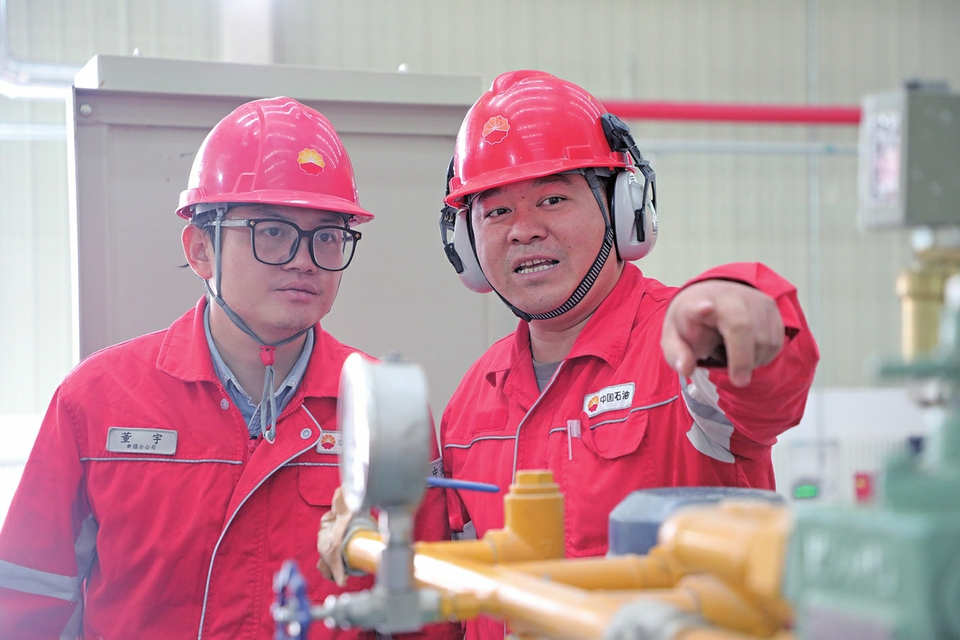 董宇(左)在南疆地区保障项目运行。 一身泛白褪色的红装,一头久未打理的乱发。这是记者见到中国石油集团济柴动力有限公司成都压缩机分公司柯克亚处理站项目经理董宇的第一印象。 “我们先后完成两台DTY1600机组的8000小时大修、两台DTY4500压缩机组的安装调试,以及8台在用机组的运维工作。”忙碌中的董宇说,2023年春节过后,他就一直坚守柯克亚处理站,已在这里连续工作8个多月。 柯克亚处理站项目,位于塔里木油田在南疆地区最偏远的气田区,肩负着南疆利民管道所辖的和田及喀什地区冬季调峰供气以及应急供气的重任。 在这个项目中,目前已有8台济柴压缩机组高效运行。今年6月,为保证当地的冬季供气需要,用户方再次增订2台济柴DTY4500压缩机组。至截稿时,这2台机组已完成72小时工业性试验,并投入运行。 据济柴压缩机产品研发设计人员曾胜介绍,DTY4500机组是公司典型的注气采气一体储气库压缩机产品,采用变频、高压、大功率、大排量设计,具有较高的可靠性和适用性,能够完美适应新疆地区严苛的应用条件。 为保障机组顺利投用,济柴现场服务人员克服当地50余摄氏度的高温天气和昼夜温差大、多风沙的恶劣环境,日夜不停地抢抓进度,仅用两个半月时间就高质量完成全部安装调试任务,为机组投产打下坚实基础。据测算,两台机组投入使用后,每天的采气量可达180万立方米,将充分发挥冬季调峰供气作用,有力保障南疆地区900多万人温暖过冬。 “济柴在用机组都运行平稳,现场运维人员也很有责任心,我们建立了良好的沟通机制,随着两台新增机组的投产,老百姓的心里更踏实了!”塔里木油田柯克亚处理站设备工程师阿不都克尤木·吐尔地说。 在柯克亚处理站,济柴20余名工作人员正日夜坚守,为机组如期运行提供运维服务支持。他们如董宇一样,都是新疆这块神奇土地上最艳丽的“石油红”,为保障国家能源安全、促进南疆地区经济发展和改善当地民生默默贡献着自己的力量。 “我在新疆7个年头了,在柯克亚处理站是第二年。这次任务完成后,还有三台机组要开展大修,我会继续在这里战斗。”董宇说。(文/图 本报记者 李萌萌 通讯员 党勍张雅琪高甲佳)