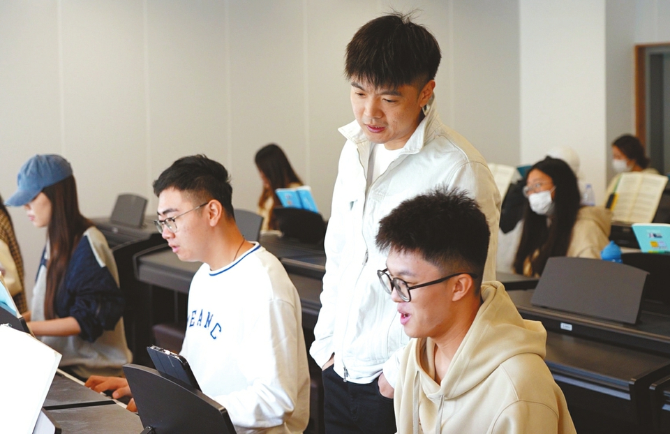 何苏杰为学生授课。 音乐,作为一种艺术形式,自古以来就伴随着我们的生活。世界上有数千种语言,而音乐却可以不分国界、跨越种族,成为世界各地文化共通的一部分。它不仅是一种艺术表达,更是一种情感的载体,能够触动人心、激发思考和共鸣。 本期青年说,让我们走近山东艺术学院现代音乐学院音乐理论系主任、音乐制作人何苏杰,看看他对音乐的理解。职业生涯的“双重身份” 出于对音乐的热爱,何苏杰考取了山东艺术学院作曲专业,并选择了音乐制作人这条职业道路。同时,又因为对教师的崇敬和向往,何苏杰走上三尺讲台,成为一名作曲老师。这让何苏杰有了“双重身份”。 “作为教师,日常主要工作就是备课、讲课,为学生传授作曲知识,同时还要撰写论文、完成课题等。”何苏杰说,“作为音乐制作人,工作主要是作曲、作词、编曲、录制、混音等一系列创作。”在何苏杰手中,音符经过组合编排,变成了美妙的旋律,同时将情感融入其间。 选择当教师,何苏杰其实还有一点“小私心”,“大学教师工作时间相对宽松灵活,还有寒暑假,这也留给了我充裕的时间进行音乐创作。”“第一次”总是最难忘 为知名艺人制作音乐、担任多档知名剧目的音乐制作人、为电影制作原创配乐、参加各类赛事……在何苏杰的职业生涯中,有着太多的经历。而最令他难忘的,还是首次获奖的情景。 “每个人的第一次往往是最难忘的,我最难忘的就是第一次获奖时的感受。当时是在无锡举办的一次民乐大赛,我的作品很荣幸获得了作曲奖项,而且自己还在舞台上进行了展演。”何苏杰说,“当走上领奖台,面对台下千余名听众的掌声,面对他们热情的合影邀请,心里既激动又骄傲,这是听众对我作品的认可,更是对我的鼓励。这一刻的成就感,也让我今后的职业生涯更有动力。”“表达”的前提是“感受” 音乐是情感的语言,如何用音乐表达情感、讲述故事,引起别人的共鸣?经过多年的积淀,何苏杰也有自己的理解。 “音乐制作人就是要赋予音乐灵魂,传递情感。而用音乐表达感情,首先是‘感受’,比如你要表达风和雨,首先要感受风和雨。要表达爱,首先要感受爱。要亲身感受并充分理解你要表达的事物。”何苏杰说,“喜怒哀乐用语言表达很容易,因为这已经是你的习惯,但是用音符、乐器和你的创作去传递给他人却很难,只有当你充分理解了音乐,融入你的感情,把音乐变成你习惯的‘语言’,传递情感才能引起别人的共鸣。”教师职责总在首位 有着“双重身份”的何苏杰,“教师”这一身份永远被他放在首位。 “我身边的很多同行,音乐制作人对他们来说是谋生的职业,工作不能停下来,也不能作出选择。而对我来说,首要的身份是一名教师,身上肩负着教书育人的职责。”何苏杰说,“我有责任把知识、理念、品行传递给广大学子,比起音乐制作人传播自己的作品,教师更重要的是传承,是培养下一代。” 对于抱有音乐梦想的年轻人,何苏杰对他们的期望就是“坚持”。“做任何事情唯有‘坚持’,这是一种态度、一种信念、一种习惯,从来没有一种坚持会被辜负,下一个成功的一定会是你。”(文/图 本报记者 高明 张晓涵 王刚卢宇辰) 扫码观看相关视频