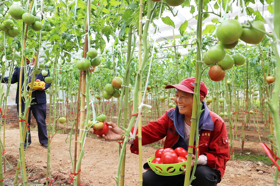 11月7日,村民在日光温室大棚内喜摘水果西红柿。长清区万德街道大刘村采取走出去、请进来,跑市场、搞调研,结合本村自然条件和实际,积极调整产业结构,创新实施“两菌一菜”种植模式,通过产业转型升级带动村级增收、村民致富,推动产业兴旺,迈出了乡村振兴的坚实步伐。 大刘村充分利用日光温室、塑料大棚进行“黑皮鸡枞+叶类菜+羊肚菌”的“两菌一菜”高效种植,通过菌、菜轮作,大大提高棚室的生产效益。据介绍,水果西红柿售价每千克在16元至20元,黑皮鸡枞和羊肚菌更是不愁销路且价格好,让特色产业种植品牌化发展,带动村民增收致富。(本报记者 吕传泉通讯员崔燕摄)