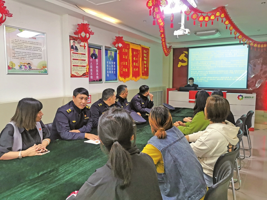 执法队员走进社区开展普法工作。 为全面提升基层城市管理领域普法工作实效,今年年初,市中区城管局制定并下发了《市中区城管局“城管进社区、全民齐参与”活动实施方案》。城管进社区工作旨在稳步推进城市管理工作重心下移,全面提升城市管理效能和为民服务水平,不断推进城市管理精细化,探索共建共治共享新路径,引导广大市民群众成为城市治理的参与者、监督者、受益者。 市中区城管局坚持关口前置、重心下移、触角延伸,以“城管进社区”工作为平台,着力打造“城管e普法”宣传站,以开展优化营商环境送法进企业活动、“城管进社区”吐槽大会、清朗网络生态网络安全宣传活动、为流动摊贩安“家”等内容丰盈、质量兼备的活动为抓手,有效打通了服务群众的“最后一公里”,实现服务群众“零距离”。打造多个“城管e普法”宣传站 市中区城管局大力推进“城管e普法”宣传站建设,提高线上普法的覆盖面和关注度,提升城管执法效能,提高城管科学化、精细化、智能化水平。为充分发挥“城管e普法”的积极作用,市中区城管局经过座谈交流,实地考察调研,在各街道办事处中首批选取十六里河街道秀和社区、杆石桥街道乐山小区、六里山街道山景社区等11个社区设立“城管e普法”宣传站,并于3月22日全部挂牌完毕,进一步拓展了社区普法宣传阵地,提高了线上普法的覆盖面和关注度。筹划精彩活动服务居民 为有效提升企业对优化营商环境的认知度,市中区城管局积极开展“送法进企业”活动。在今年第四个优化营商环境法治宣传月期间,市中区城管局联合市城管执法支队来到中铁二十局济南轨道交通4号线一期工程05工区项目部党支部,组织开展“项目突破年”优化营商环境法治宣传活动。活动期间,大家就《济南市优化营商环境条例》进行座谈交流,共同观看文明施工和垃圾分类“城管e普法”宣传视频,现场发放了垃圾分类宣传册、温馨告知单。与会人员纷纷表示,送法进企业活动提升了企业员工的法律意识,畅通了政企合作交流的渠道。 市中区杆石桥街道积极响应“城管进社区”工作号召,大力创新进社区的形式,开展了“吐槽大会”系列活动。市中区执法大队杆石桥中队作为派驻机构,充分发挥普法员、宣传员的作用,深入社区一线,打造高质量可持续发展的“城管进社区”普法合力,用实际行动为社区居民解决实际问题。10月份,他们走进乐山小区同社区物业及居民代表开展“吐槽大会”活动,现场居民提出,“虽然生活中发现爱狗人士遛狗牵绳意识强了,但仍忽视了宠物犬的粪便清理后续工作。”活动现场,执法人员对文明养犬行为进行相关的法律法规讲解,为大家进行普法宣传。活动开展以来,切实提高了居民尊法、守法、学法、用法的意识,让普法服务真正地“脚踩泥土”。丰富载体高效普法 市中区城管局充分利用城管法治主题公园、社区城管工作站、市中城管公众号、社区普 法宣传站、721微信 工作群等载体,直接 高效地进行普法宣 传和法治教育,增强 市民群众学法、懂法、守法意识,提高法治文化水平。截至目前共设立社区城管工作站8处,将管理关口前移,以宣传引导强化“事前预防”,对违反城乡规划的违法违章建设行为和违法建设法律后果进行警示提醒,引导广大市民自觉遵守法律、抵制违法建设,推动形成全民共建共治共享的良好氛围。 下一步,市中区城管局将加强与街道办事处、社区居委会沟通协调,进一步通过城管开放日、法制宣传日等活动,介绍城市管理方面政策法规、标准规范及便民服务措施,以案释法,以案普法,增强居民依法维护权益的自觉性。同时,配合街道办事处、社区居委会,加强对物业服务企业、志愿服务组织及从业人员的培训,提高城市管理业务知识水平,打造城市管理“后备军”,扎实开展好普法宣传教育工作,为全区经济社会高质量发展营造良好法治环境。(文/图 本报记者刘高君通讯员李艳斐赵莉莉)