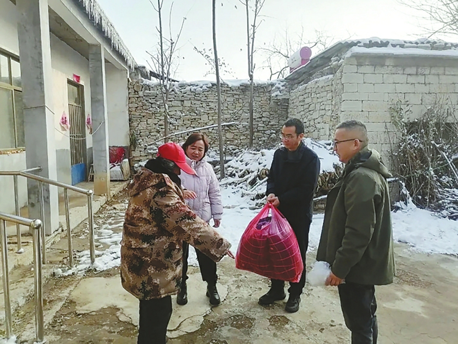 工作人员给独居老人送来防寒物资。 本报讯(记者冯经伟)“独居老人是否缺衣少穿?”“大雪给独居老人生产生活带来多少困难?”近日,带着对独居老人的牵挂,冒着大雪,平阴县退役军人事务局分管负责同志、驻村第一书记和村“两委”组成“送温暖”小组,带着新购置的棉衣、棉被等慰问物资奔赴孔村镇安子山村、安城镇南栾湾村,给独居老人送去寒冬里的一缕温暖。 “下这么大的雪,天寒地冻的,还给俺送东西,感谢党的关心!”安子山村独居老退役军人晁连印是该村住址较偏远的住户,“送温暖”小组带着物品、踏着积雪来到了晁连印家,将棉衣、棉被等物资交到他手里。 对于独居老人在大雪严寒中的生活状况,县退役军人事务局党组高度关心。每到一户,县退役军人事务局分管负责同志和驻村第一书记都仔细查看房屋状况,详细询问他们的生活近况,嘱咐他们要做好防寒,及时增添衣被,尽量避免在大雪天气外出。