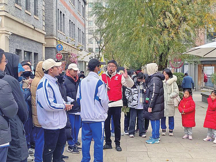 本报讯(记者刘烨)近日,泉城导游义工联合大观园街道万紫巷社区为省实验中学学生开展商埠文化研学活动。 泉城导游义工结合商埠文化资源、老建筑分布等要素为学生们设计了一条商埠文化研学路线,依次游览瑞蚨祥绸布店、亨得利、张采丞故居、皇宫照相馆以及中山公园等商埠文化场所。泉城导游义工王玉结合历史典故、现存建筑、街巷故事进行了细致地讲解。天气严寒,抵挡不住学生们的参与热情,大家对商埠文化历史、历史上的街巷设计等问题向王老师询问,王老师用诙谐幽默的话语、丰富专业的历史知识为学生们进行了解答。 市文旅局市场管理处负责人介绍,泉城导游义工打破壁垒,协调资源,从景区到社区到学校,不遗余力宣传济南文旅资源,向广大市民游客展示文化济南、文明济南的旅游形象。下一步,泉城导游义工要广泛寻找城市文化脉络,打造更多精品公益研学路线,助力济南文旅行业高质量发展。