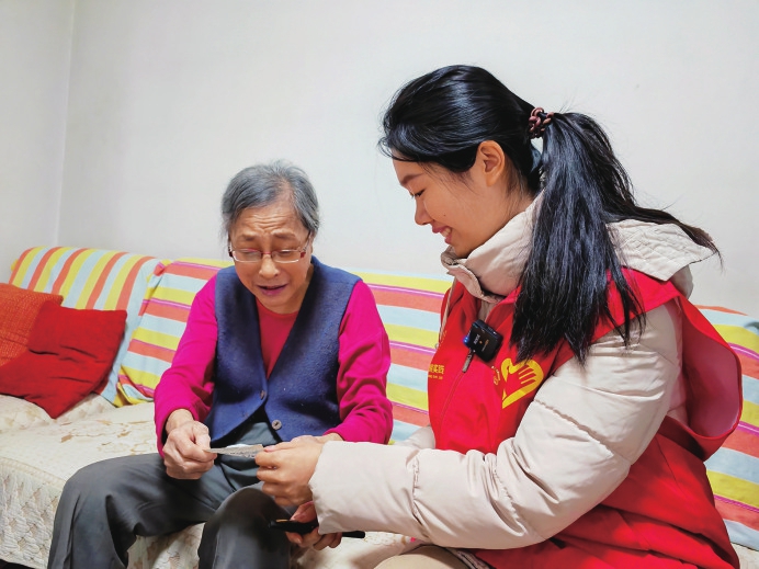 一位年轻时走南闯北的独居老人为社区的基层治理出谋划策。 14日一大早,社区工作者顶着寒风开始了为期一天的入户走访工作。 社区网格员为独居老人留下联系方式。 老人将自己的心愿写在了纸条上。社区工作者和独居老人拉家常。先锋档案 怎样让党建为养老服务注入不竭的动力? 锦绣泉城社区通过多次尝试,才有了现如今的党建“方法论”——“党建+养老”,基层党员干部和独居老人“结对帮扶”、与街道综合养老服务中心合作,实现党建和养老业务深度融合;“阵地+养老”,让老年人尤其是独居老人,步行15分钟就能找到日间照料、托养、助餐、助浴、助医等“家门口”的助老服务;“网格+养老”,有居家养老需求的老人“一人一档”,确保每一位独居老人的口袋里都有一张“民情暖心卡”。 14日下午,济南一片银装素裹。 历城区东风街道锦绣泉城社区的党员干部带着生活物资去看望独居老人,片片雪花飘落在肩上化作小水珠,铺着白色积雪的路面留下了一串串脚印。约15分钟后,社区工作者赵煜突然停下脚步,抬手一指说:“就是在这!天气好的时候,荣华姨经常一个人在这里荡秋千,大老远,就能看见老人的背影。” 记者望向赵煜手指的方向,白茫茫的一片中,秋千随着寒风前后摆动,仿佛在等着它的老朋友……今天的故事,就从社区党员干部和一名独居老人的“秋千之约”说起。初识秋千上的背影 赵煜口中的“荣华姨”是65岁的社区独居老人张荣华,也是一名入党40多年的党员,还是社区里的“热心肠”。两人初识,是在3年前。 当时,赵煜走进小区,远远地看见一位满头华发的老人独自荡秋千,时不时抬头看着暖阳……这个场景,让赵煜印象深刻,“当时,感觉这位老人挺孤独的,我就上前和她打招呼。”赵煜回忆,老人常年独居,“只要天儿好,老人就喜欢在楼下荡秋千,几乎每次我们走访时都能看到她,慢慢地我也养成了不管路过与否都往秋千那边转悠一遭儿的习惯。” “买了鲜花、带上手写纪念信,几位老人相约去辖区设立的为国捐躯战士事迹展示墙前祭奠。”赵煜记得,一次走访时恰好碰到张荣华,她正喊着几位“闺蜜”出门。老人虽常年独居,但积极向上的生活态度,让她在小区里收获了好人缘。 “社区里的大事小情、矛调现场总有她的身影,很有威望。”赵煜说,针对辖区老年群体,社区推行“党建版”服务模式,基层党员干部积极划分“责任田”,与家庭情况特殊的老人,尤其是独居老人“结对子”,一对一帮扶。“遇到这种恶劣天气,天天敲敲门、上门拉拉呱,已形成常态。” 此前,社区开展“我为历城献良策”等活动,张荣华总有巧妙的“金点子”,关乎社区环境改善、小区基层治理、独居老人心理关怀……“咱约着荡秋千那地儿,拉拉呱呗。”每每听到老人的这句话,赵煜总觉得有一股暖流涌上心头。党员干部梳理“需求清单” “胸口难受,头晕没有力气……”15日清晨,69岁的独居老人李女士突然感到身体不适,她赶紧按下了提前备好的“居家安全智能预警”装置。 社区工作人员接到呼救电话,与街道综合养老服务中心工作人员一起赶往现场。由于救助及时,老人脱离了危险。 “针对独居老人困难群体,社区申请安装了居家安全智能预警服务项目,可提供24小时紧急呼叫响应及异常预警远程监测照护服务。”社区网格员薛若琳介绍,这几天持续降雪,为了让老人安心,社区做了大量的储备工作。入户走访时专门给辖区老人送去了大白菜、保暖贴等生活物资; 记录有上门助浴、免费送餐等需求的独居老人信息,及时展开上门服务,并致电问询、回访,全力保障雨雪天老年人的日常生活所需。 上午11点,薛若琳再次去往李女士的家里,她告诉记者:“阿姨的身体还没恢复好,我还是有点不放心,再过去一趟,看看家里还有什么需要帮忙的?” 多年来,社区针对空巢独居、重病失能等类别老人,分类梳理需求清单、服务清单,是推行的党建引领下的养老服务模式的一项有力体现。党建版“养老大计” 东风街道锦绣泉城社区党委副书记于瑞雪介绍,在日常工作中,独居老人被列为重点走访对象,锦绣泉城社区也在积极探索社区居家养老与党建深度融合的服务模式—— 创新“党建+养老”模式,一方面由社区党员干部及时掌握辖区老年人的身体、思想等情况,把握老年人需求,精准服务;另一方面,社区依托街道综合养老服务中心在辖区内开展日间照料、托养、助餐、助浴、助医等助老服务。 细化“网格+养老”服务。社区以网格为单位,对各网格内60周岁以上的老人进行筛选和甄别,为有居家养老需求的老人建立一人一档,对老人的健康状况、生活习惯、子女家属、个人经历等情况进行详细记录、动态更新。又依托社区民情暖心卡,当老人有服务需求或情绪困扰时可通过这张卡联系网格员,社区党员干部能及时回应。 挖掘“项目+养老”需求。社区以老年人需求为导向,形成各类养老服务项目,扩展多元需求服务供给。社区将老年群体进行分类,针对空巢独居、重病失能等类别老人,分类梳理需求清单、服务清单,制定了社区食堂免费上门送餐、上门助浴等项目。针对独居老人困难群体,申请安装居家安全智能预警服务项目,可提供24小时紧急呼叫响应及异常预警远程监测照护服务。此外,社区还积极联合辖区共建单位、社会团体,制定了爱心义剪、公益电影放映、健康