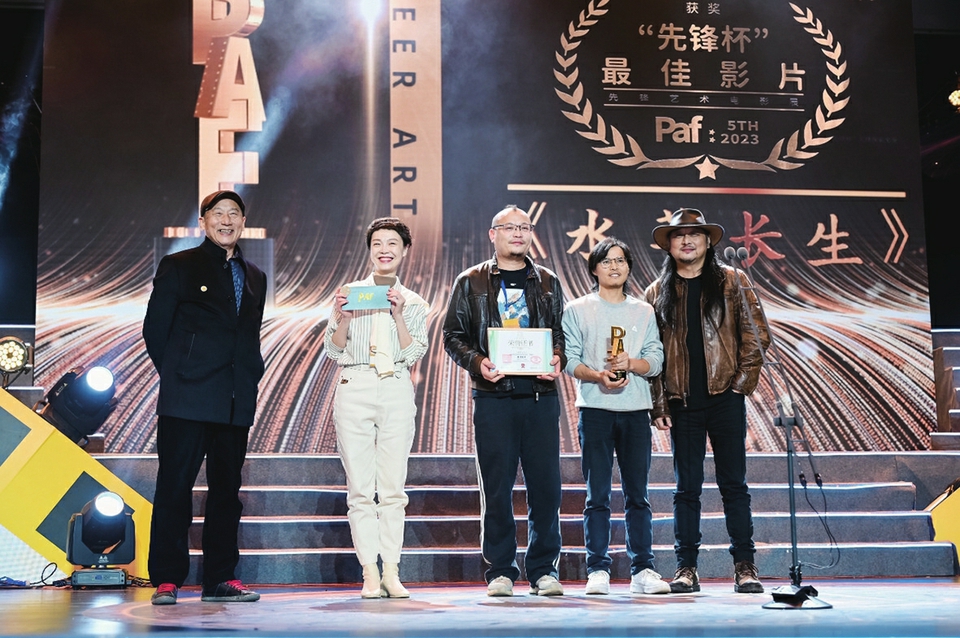 领奖现场 近日,第五届中国先锋艺术电影展在重庆落下帷幕。由山东大学影视文化艺术传播研究中心联合出品,山东大学影视文化艺术传播研究中心执行主任于晓风担任出品人、策划的《水草长生》,斩获最佳影片、最佳导演两项大奖。该片是首部由山东大学出品的院线电影剧情长片。 作为一部作者风格浓郁的艺术类剧情长片,《水草长生》通过讲述少年广猪仔的“失去”,力图寻找一种行走于城市与农村的中间出路,站在孕育生命成长的土地上,日出而作,日落而息,闻鸡鸣狗吠,种田插秧,感受每个季节和节气,不衣锦,不狼狈,重新思考这片土地如何让未来更自由、更宜居、更值得依恋。在当前“强情节、弱感受”的电影创作大环境之下,本片创作历程持续了10个年头,倾听孤单生命的声音,思考城市与乡村、孩子与母亲、人与土地的关系,力图建构诗意栖居的人文艺术价值。此前,本片已提名第15届FIRST青年电影展主竞赛单元,并在学者之选单元斩获佳绩。 本片导演荀伟平是一位“80后”电影人,《水草长生》是他的导演处女作。回顾自己“野蛮生长”的创作之路,他认为清醒的自我认知、独立的判断和百折不挠的坚持是应对选择、困惑、质疑的武器,脚下水草丰茂的稻田和生养自己的土地给自己提供了源源不断的力量。本片制片人、摄影指导焦峰曾获得鹿特丹金虎奖最佳摄影、FIRST青年影展最佳摄影等多项殊荣。关于《水草长生》,他认为发现质朴生活之美既是一种能力,也是一种勇气,当对的电影遇到对的观众,方是对电影人最大的奖赏。 于晓风认为,寻找电影理论研究与创作实践之间的有效链接路径,消减工业化匠气对于人文性本质的干扰,匹配故事内核与形式节奏的恰切,是《水草长生》独特的中国化审美意蕴,也是回应跨文化传播语境下“讲好中国故事”的答卷。 (本报记者张晓涵通讯员周心怡)