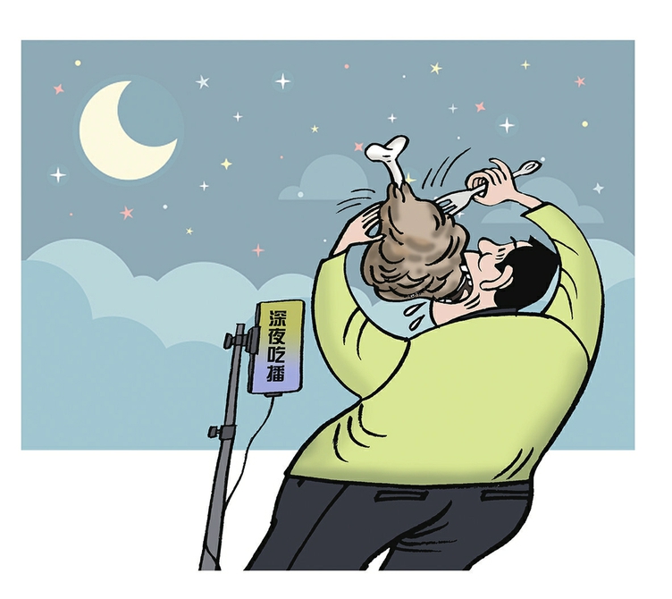□唐传艳 将整个蒸西葫芦一口吞下,连吞3个;先一口吞下一块肥腻的蒸肉,后两口吞下整根大血肠,嘴巴里被塞得满满当当的……记者近日观看30多场深夜吃播,并采访相关业内人士了解到,深夜时段,被明令禁止的“大胃王”吃播又回来了。这些主播一般在晚上11点以后上线,在“吃吃吃”的同时推销产品或植入广告。(12月20日《法治日报》) “大胃王”吃播之所以选择在深夜重新开播,主要是因为在他们看来,夜深人静,无论是直播平台,还是监管部门,都会有所松懈,至少值守人员要比白天少得多。此外,在白天,群众举报通常不会考虑时间问题,但在深夜,就可能认为监管人员已经下班而不再举报。这些原因都会让“大胃王”吃播产生侥幸心理,认为深夜上线要安全得多。 这说明,对直播行为的监管,要避免出现白天紧深夜松、平时紧假期松等现象,监管一旦出现规律,就容易被人钻空子。事实上不仅吃播如此,一些打色情擦边球或销售违禁物品的直播,也都喜欢选择在深夜开播。对于这种现象,各种监督力量都应该充分了解、认真应对,推出针对性举措。只要强化“全天候”监管,让监管力量不因夜深人静而有所放松,这种逃避监管的小聪明就难以得逞。 过去对“大胃王”吃播的查禁与处罚很严格,但他们之所以仍敢冒险重新出现,与巨大的利益诱惑有很大关系。冒险直播一次,可以引来大量围观者,此时吃播趁机打广告和销售产品,巨大的流量就会迅速变成巨大的利益。部分吃播敢于损害自身健康,在监管面前当然也敢于冒险,尤其当处罚额度远不及冒险直播获得的利益时,铤而走险就在所难免。 因此,相关监管除了要做到更加严密无缝之外,还要在处罚额度等方面和吃播算一算细账。每一次吃播被发现后,都应核算其所获取的利益,并且处罚额度要高于这些利益。还要看到,不是每一次吃播都会被发现,对于监管遗漏的吃播行为及所带来的收益,也要加以估计并计入处罚,使“大胃王”吃播从总体上认为不值得冒险。 “大胃王”吃播不仅浪费粮食,而且给公众带来不科学、不健康的信息和观念,尤其会造成对于健康方面的误解,吃播本人和跟风者的身体健康也可能受到严重损害。此外,欺骗性假吃,还会影响诚信、败坏行风。因此,对于“大胃王”吃播的监管,要保持长期性与稳定性,既要在吃播泛滥时采取集中整治,更要在他们有所消停时保持警惕,避免其死灰复燃。 “大胃王”吃播深夜回归,如此顾头不顾尾,是鸵鸟心态的体现。监管不放松不停歇,随时保持在线,才能让夜色无法成为“大胃王”们的遮羞布,若如此,类似看似聪明的做法,就会变成“鸵鸟的笑话”,从而将“大胃王”吃播复出之路堵死封牢。