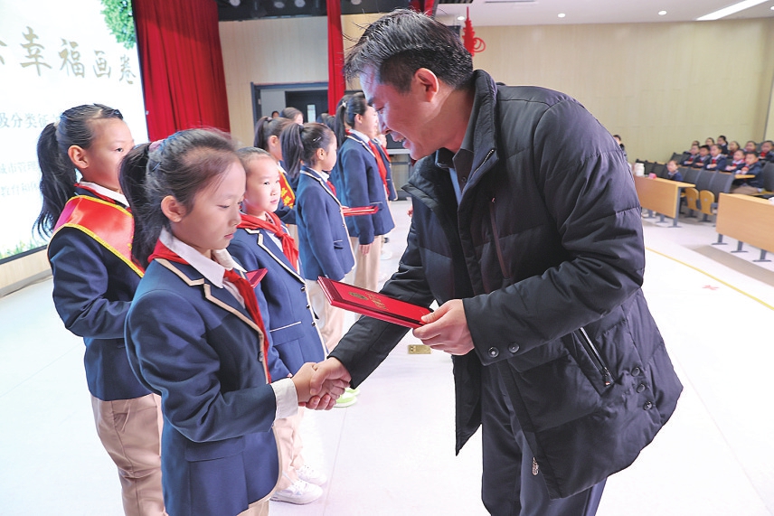 颁奖仪式现场。学生代表讲述获奖感受。获奖学生代表领取证书。历城区开展行业部门生活垃圾分类专项督导。 校园是垃圾分类知识的实践场所。为教育引导广大青少年从小养成垃圾分类的好习惯,12月20日上午,“执文明之笔绘幸福画卷”历城区“分类·我行动”校园垃圾分类征文活动颁奖仪式在义轩小学举办,此次活动由历城区城市管理局、区教育和体育局联合主办。通过此次活动,鼓励学生们自觉参与垃圾分类,执青春之笔,书写魅力历城新画卷。 历城区妇联党组成员、副主席孙瑞云,历城区教育和体育局党组成员、副局长杨东兴,历城区环境卫生管护中心副主任赵辉,济南市生态环境局历城分局负责同志,历城区各街道办事处垃圾分类分管负责同志,参赛学校教师代表、学生代表,垃圾分类志愿者代表等参加活动,共同为垃圾分类工作助力。 今年11月份开始,针对历城区范围内义务教育阶段3-9年级学生,历城区城管局联合区教育和体育局以“分类·我行动”为主题开展征文活动,要求学生以弘扬绿色低碳新风尚为生活理念,围绕学习生活垃圾分类知识、开展生活垃圾分类实践内容为主线,讲述身边的生活垃圾分类好故事。活动开展以来,广大师生踊跃参与。经过层层选拔,最终评出一等奖5名、二等奖10名、三等奖20名、优秀奖50名。 赵辉在致辞中表示,近年来,历城区落实住建部“九个一”系列宣传活动要求,通过开展系列活动,实现垃圾分类宣传“全链条提升、全方位覆盖、全社会参与”的良好效果,打造“绿色历城”垃圾分类品牌,走出了具有历城特色的垃圾分类路子。通过开展征文比赛,以赛促学、以学促行,引导孩子们进一步认识到垃圾分类的意义,让垃圾分类教育从校内延伸到校外,实现“教育一个孩子,带动一个家庭,文明整个社会”的目标,让垃圾分类在学校教育中不断线、不断档。 活动现场,杨东兴公布征文比赛情况及获奖名单。他说,此次征文活动参赛作品主题明确、体裁丰富、主题得当、创意新颖,作品积极探讨了垃圾分类的问题,记录了日常生活中开展垃圾分类的感受与体验,展示了垃圾分类的重要性和价值,也展现了新时代少年良好的写作能力。“希望获奖 同学继续积极参与各类垃圾分类主题 宣传活动和志愿服务,将规范分类 落于日常,小手拉大手,共同‘分’出城市绿色时尚新常态。” “通过这次活动,我认识到垃圾分类是‘功在当代、利在千秋’的好事。在以后的生活中,我一定从垃圾分类做起,成为一个环保小卫士,保护好我们美丽的家园!”现场,来自义轩小学的获奖代表杨玉蕤向大家分享参与此次垃圾分类征文活动的感想和收获。 垃圾分类,你我都不是“局外人”。一直以来,历城区将校园作为推进垃圾分类工作的重要阵地之一,通过知识宣讲、互动游戏等环节,让垃圾分类“大讲堂”融入学校的“小课堂”。义轩小学积极践行,将垃圾分类融入项目化学习课程,并率先发起无废校园创建行动,培养孩子绿色环保习惯。活动现场,义轩小学德育处主任王倩就垃圾分类项目化学习课程分享经验。在垃圾分类竞答环节,小朋友们踊跃参与、举手抢答,在互动中学习了垃圾分类知识。 颁奖仪式结束后,与会人员共同前往历城区欣易幼儿园开展行业部门生活垃圾分类专项督导,查看垃圾分类进课堂执行情况和垃圾分类收集设施配置、布局情况等。 垃圾分类理念要从娃娃抓起,贵在坚持,重在习惯。赛事虽已落幕,但在奇思妙想和写作探索过程中,垃圾分类理念的种子却在每位参赛者的心中悄然撒播。接下来,历城区将面向学生群体举办更丰富多元的宣传活动,进一步推进中小学垃圾分类新时尚,营造中小学生积极参与垃圾分类的良好氛围。 (文/本报记者 李娜 图/本报记者吕传泉)