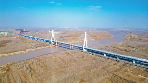 G104京岚线济南黄河公路大桥主体施工有序进行。
