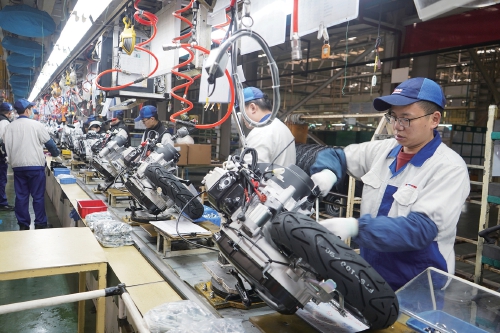 轻骑铃木各生产线全部开工,车间一线员工投入到紧张忙碌的工作中。