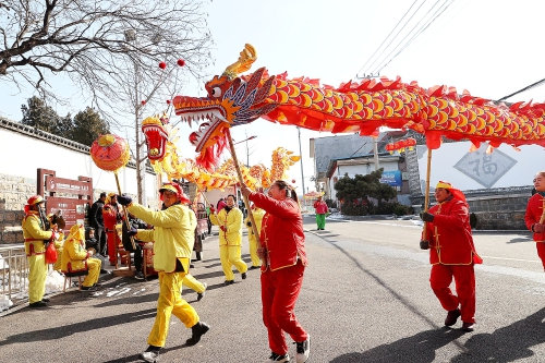 2月23日(农历正月十四),长清区万德街道义灵关村锣鼓喧天,花灯队走街串巷为人们送上新春祝福,欢欢喜喜闹元宵。 (本报记者 吕传泉 通讯员 宋刚 摄)