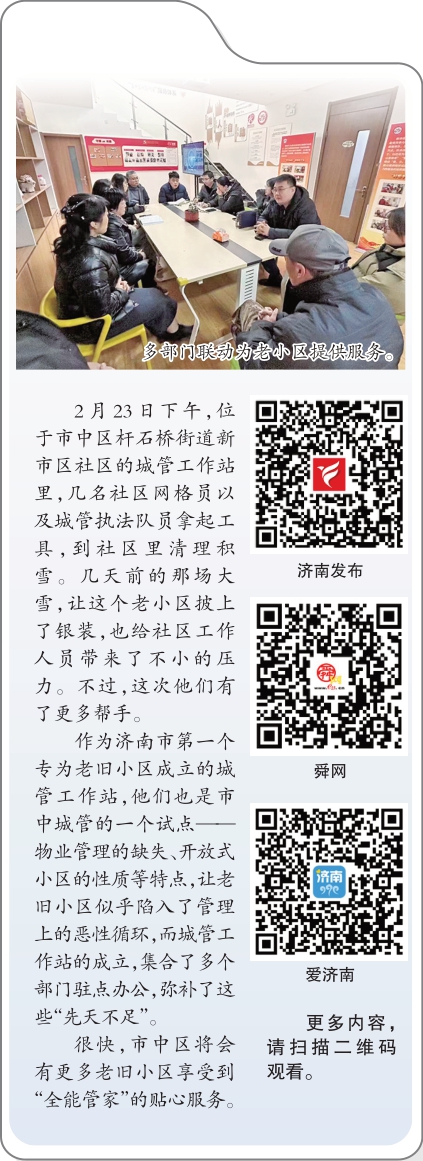 作为济南市第一个专为老旧小区成立的城管工作站,他们也是市中城管的一个试点——物业管理的缺失、开放式小区的性质等特点,让老旧小区似乎陷入了管理上的恶性循环,而城管工作站的成立,集合了多个部门驻点办公,弥补了这些“先天不足”。