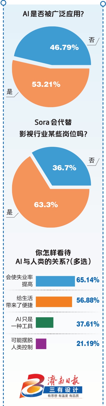 “虽然So ra可能让一些影视后期工作者受到冲击,但反过来想,它的存在也可以提高影视后期制作效率,至少能够成为这些工作者的帮手。”市民王女士是“乐观派”,她认为AI将是人类社会的好帮手,“人工智能是不知疲劳的,能24小时运转,可以极大提高工作效率,或者填补人工空白的时间段,对任何行业来说这都是降低人工成本的好事。”